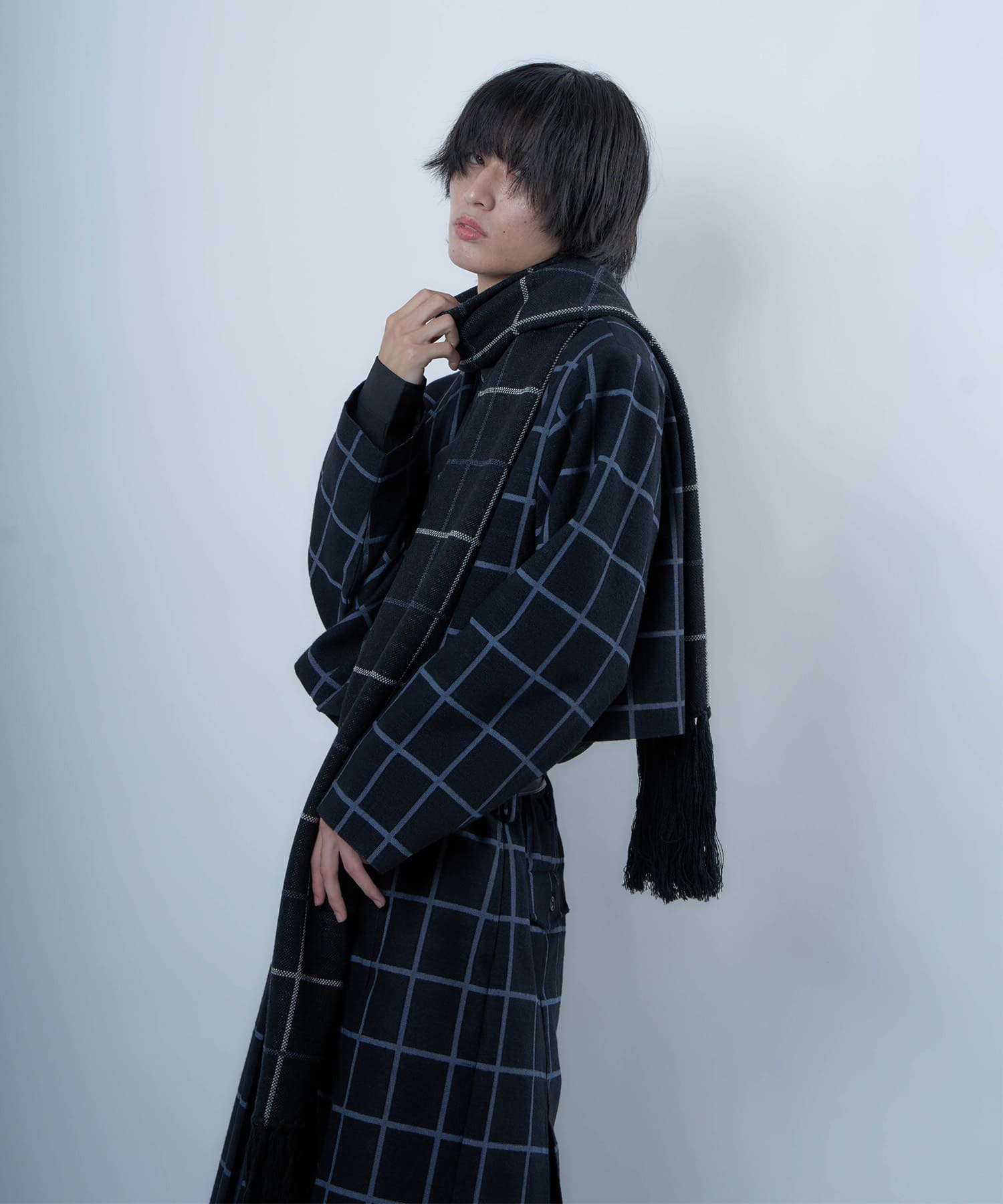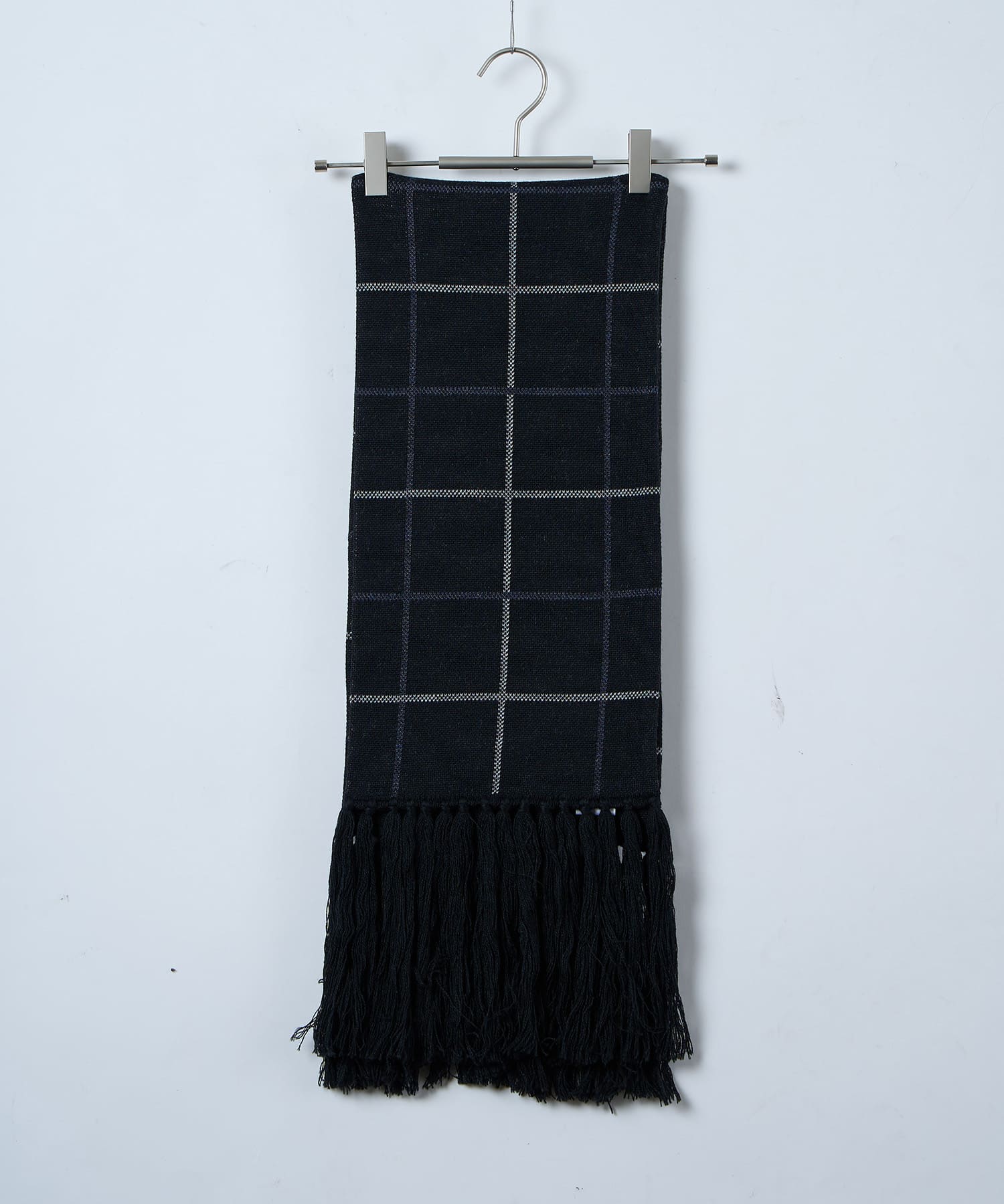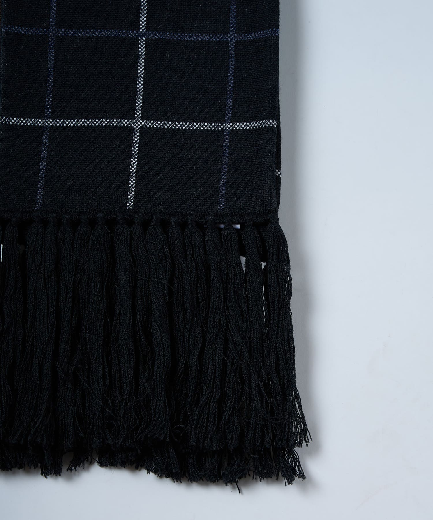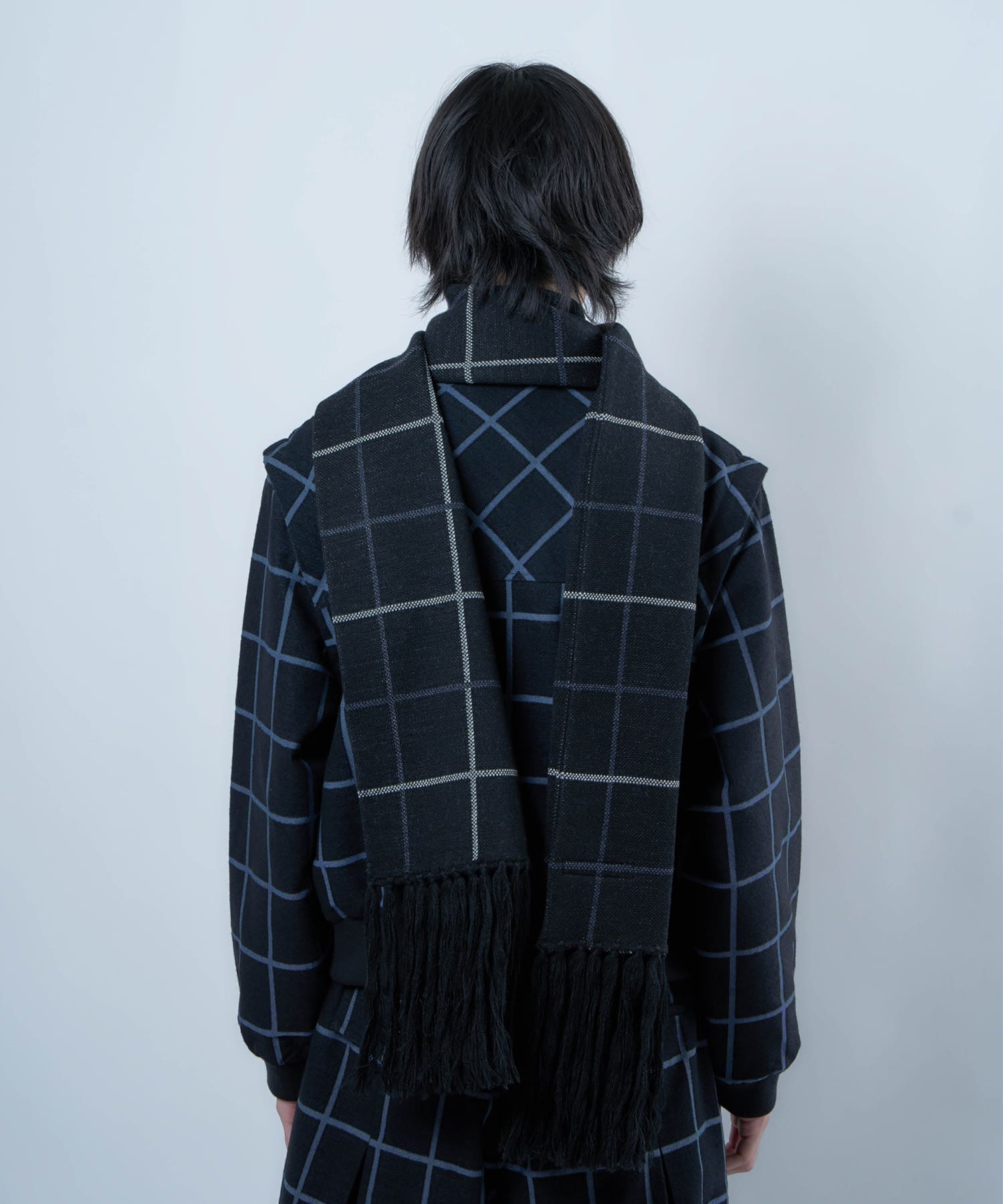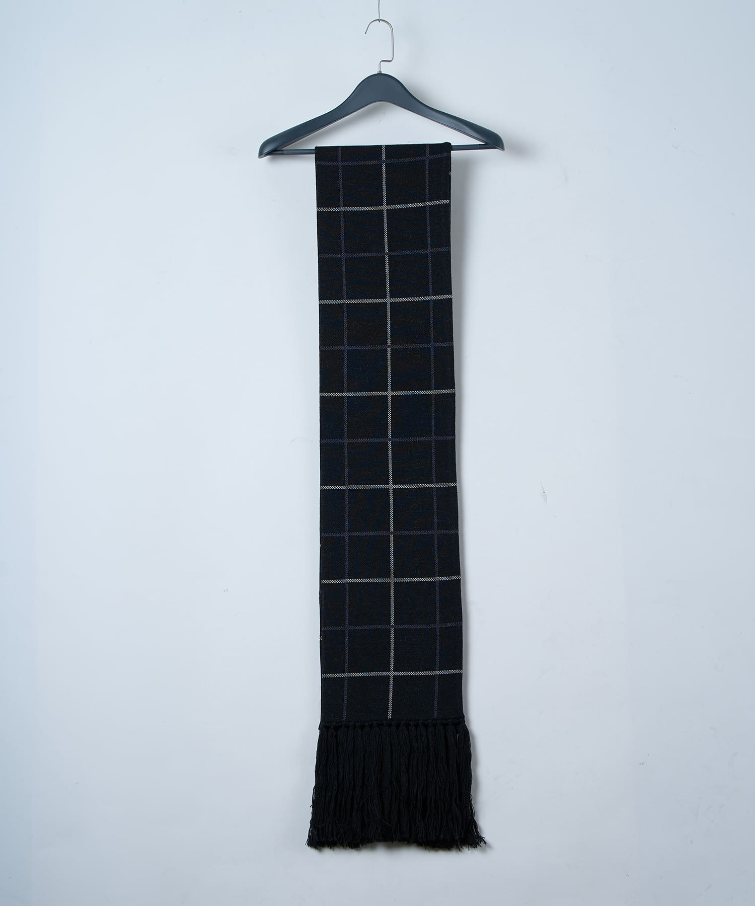別注生地を使用したブループレイドロングマフラー。