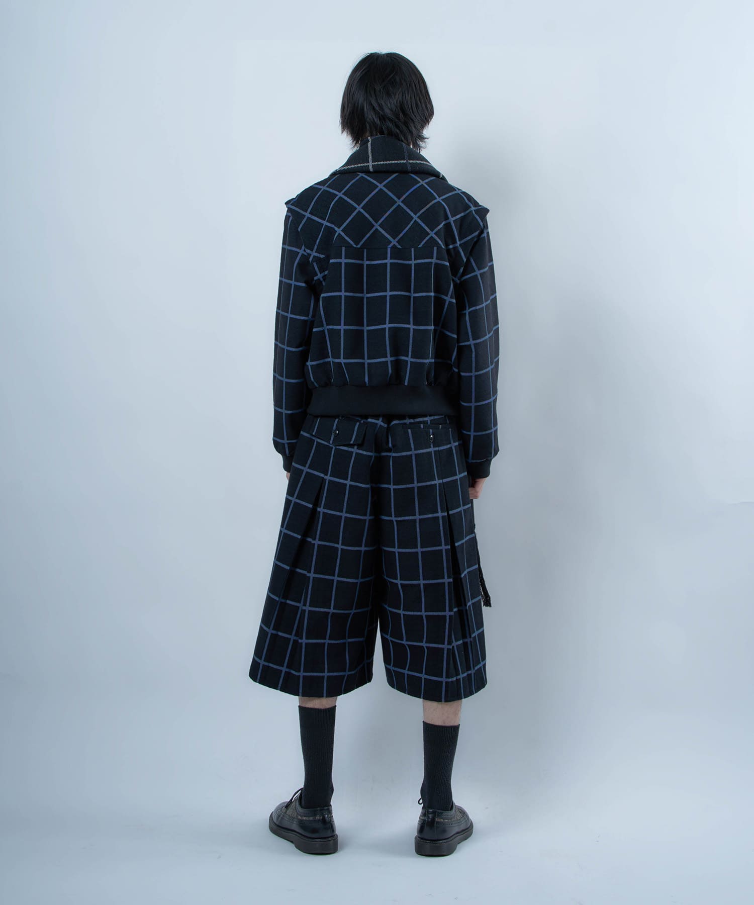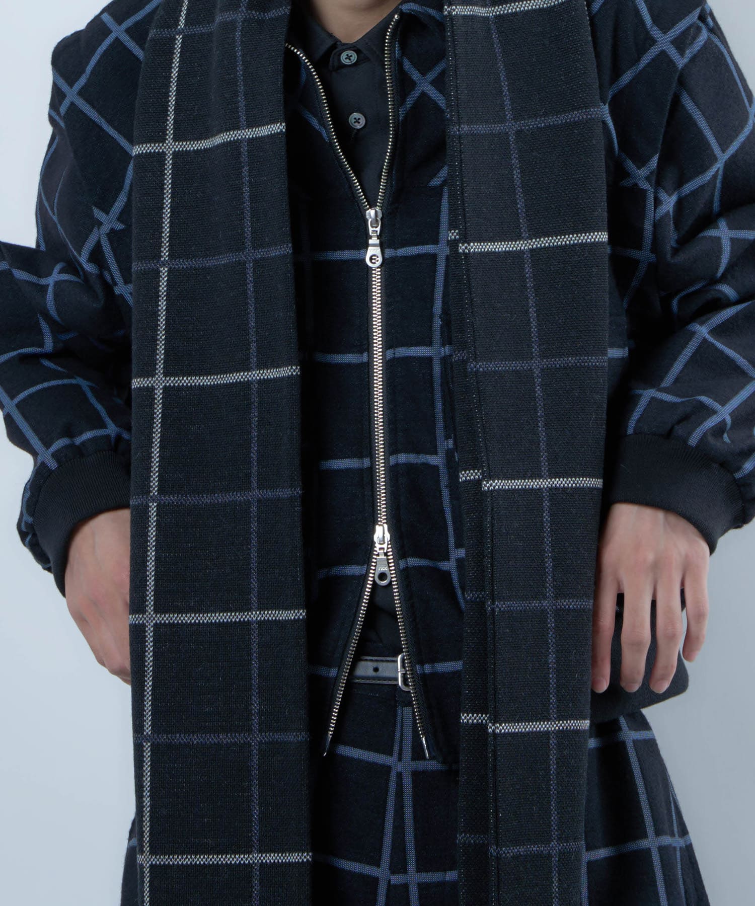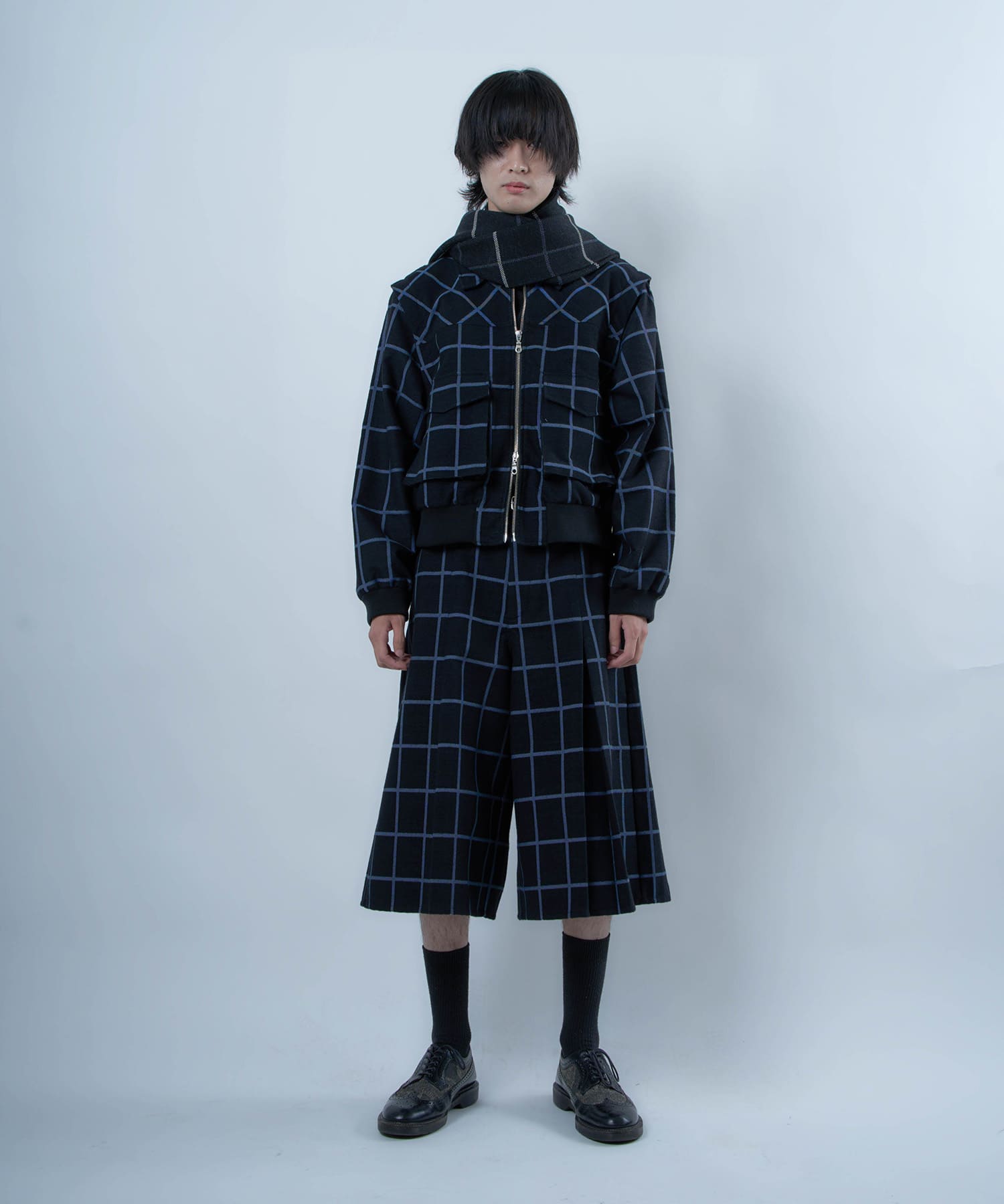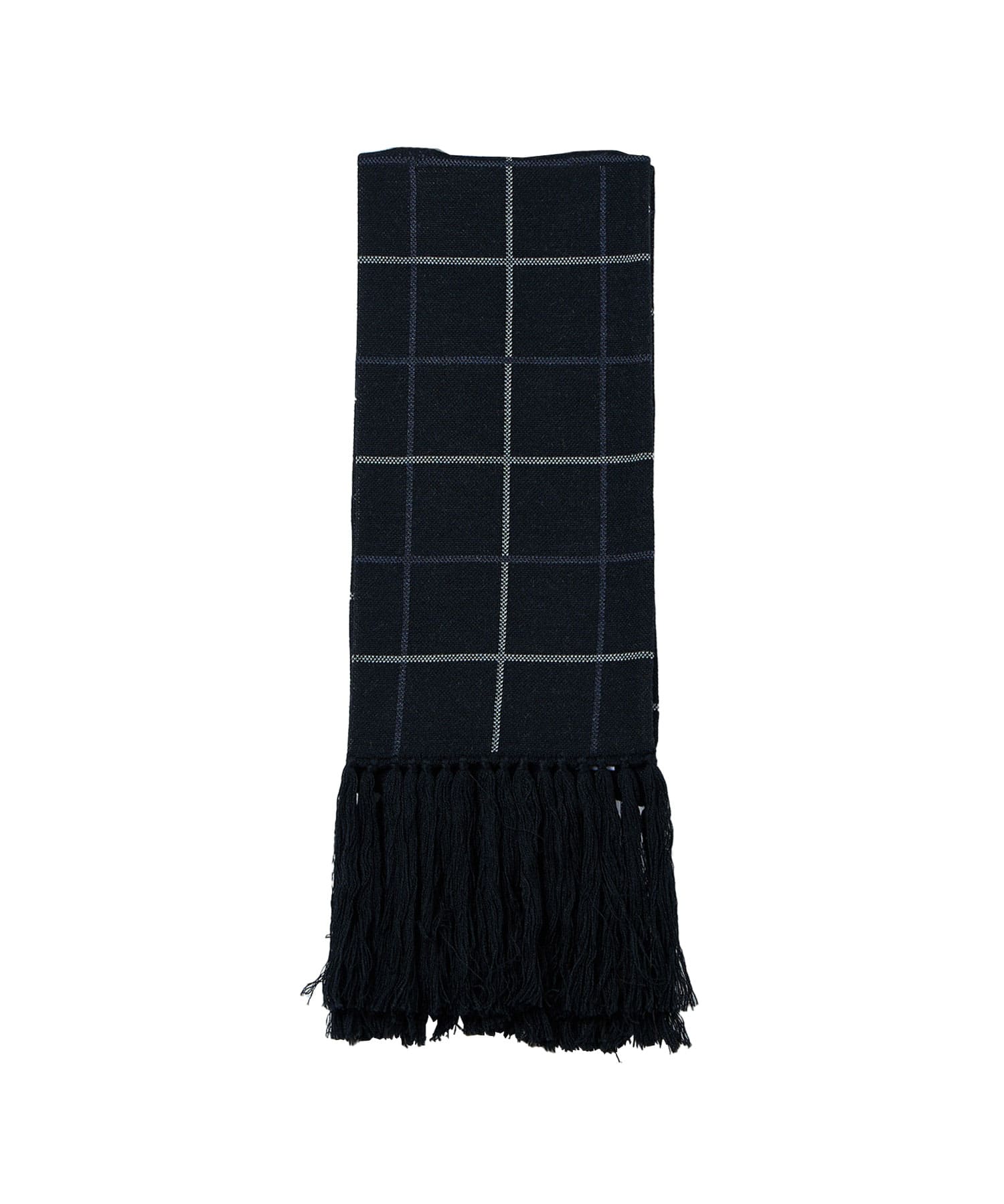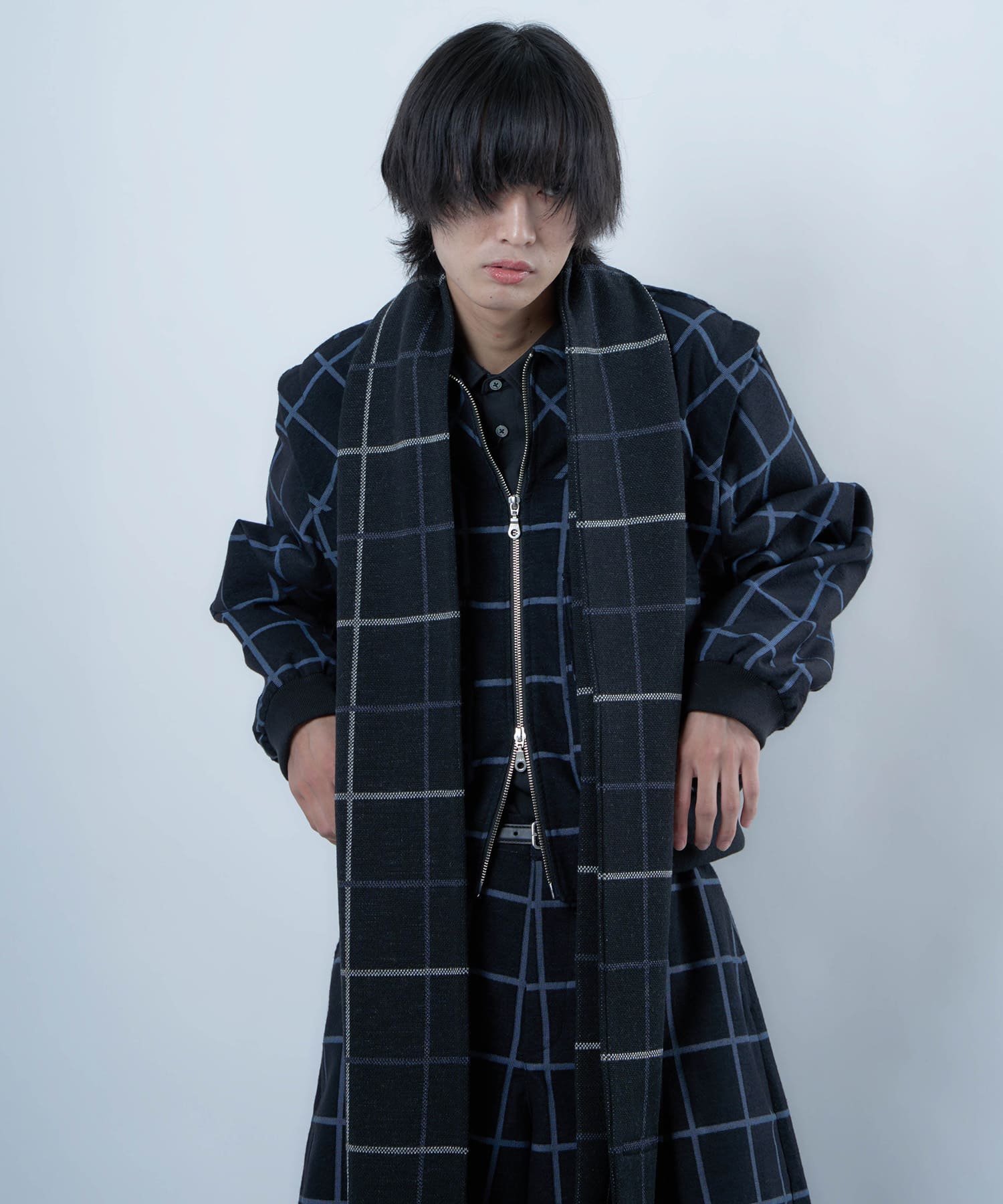 別注生地を使用したブループレイドロングマフラー。