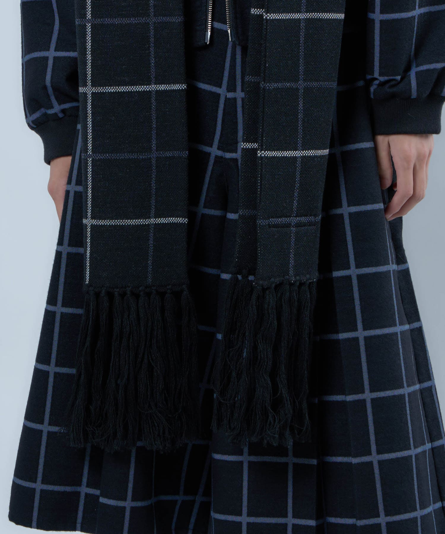Blue plaid long scarf made of special order fabric.