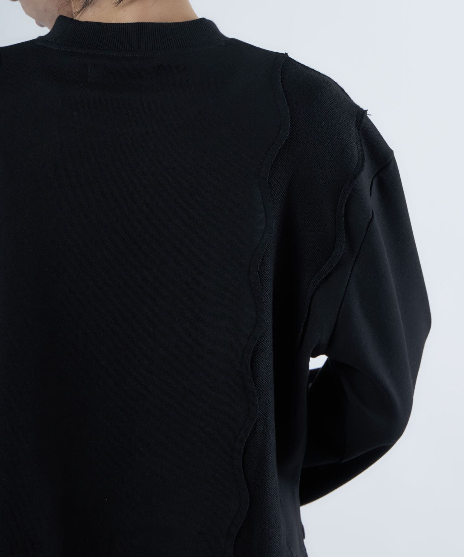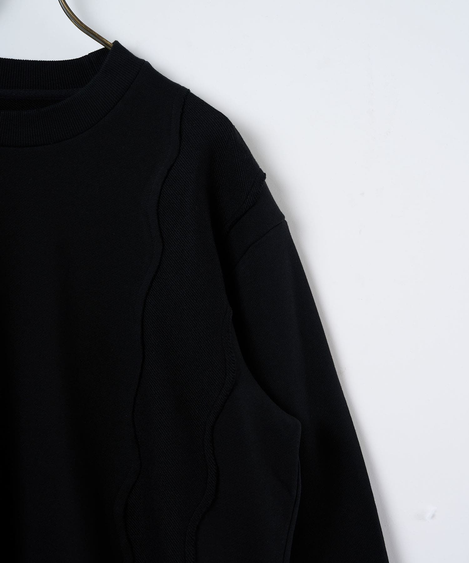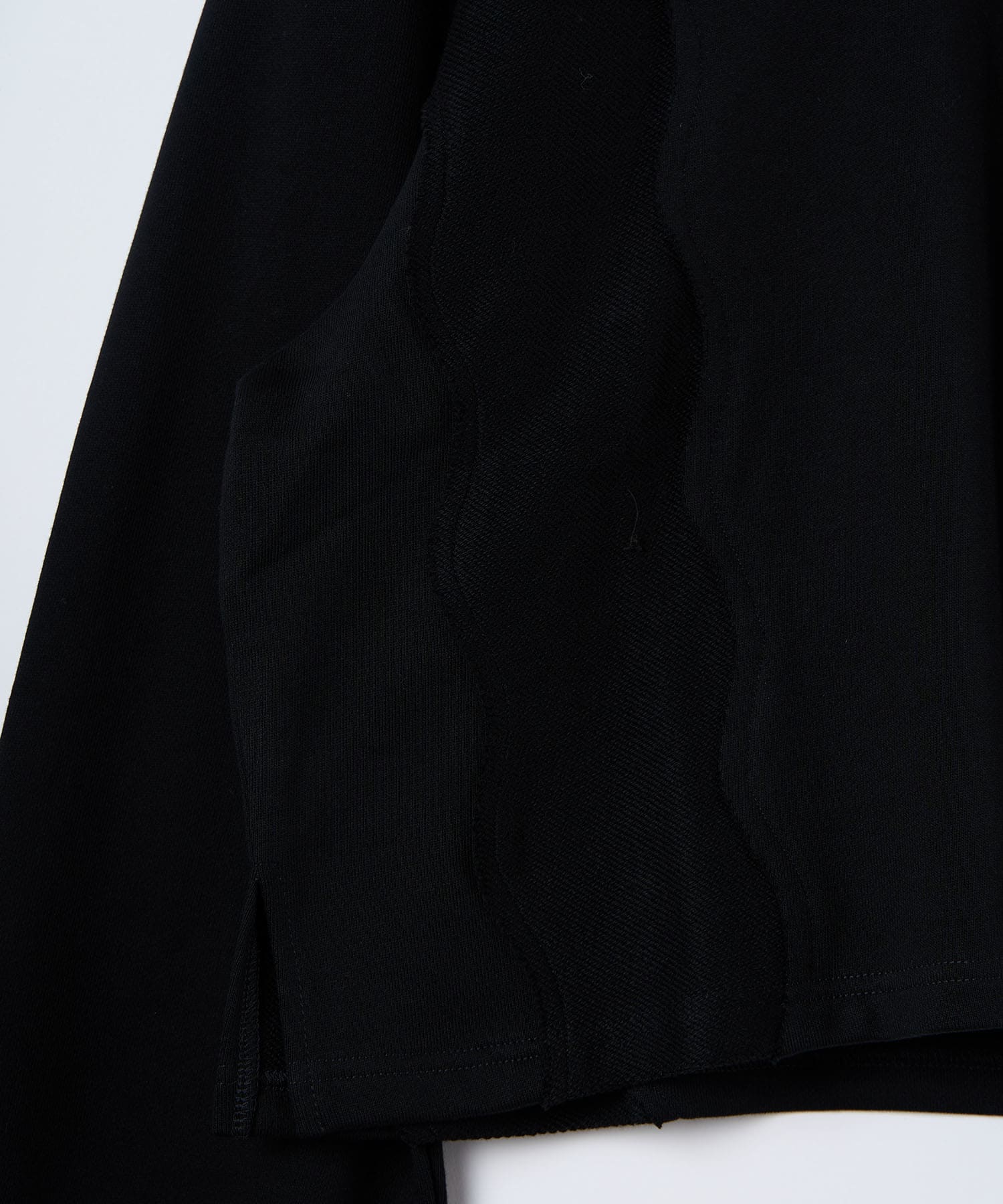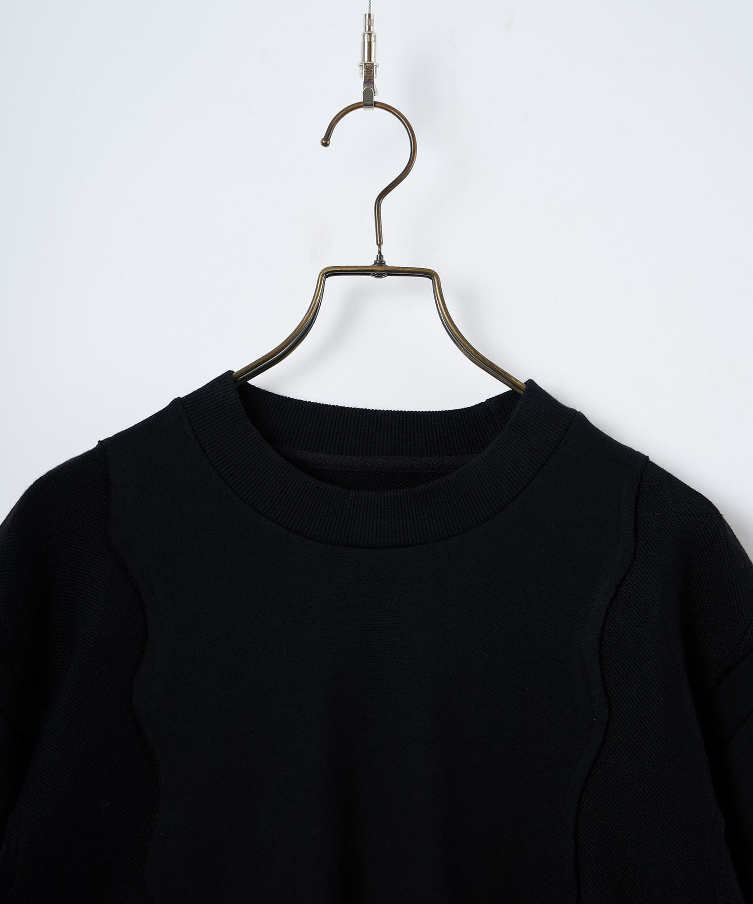 肌触りの良い100%コットン素材を使用したアイビーライン スウィッチングプルオーバー。アイテム名のアイビーラインはツル植物から着想を得ており、身頃を植物が伝っているイメージを切り替えのラインにて表現しています。NOTでは珍しいコンパクトなサイズ感で着心地の良いアイテムに仕上げています。