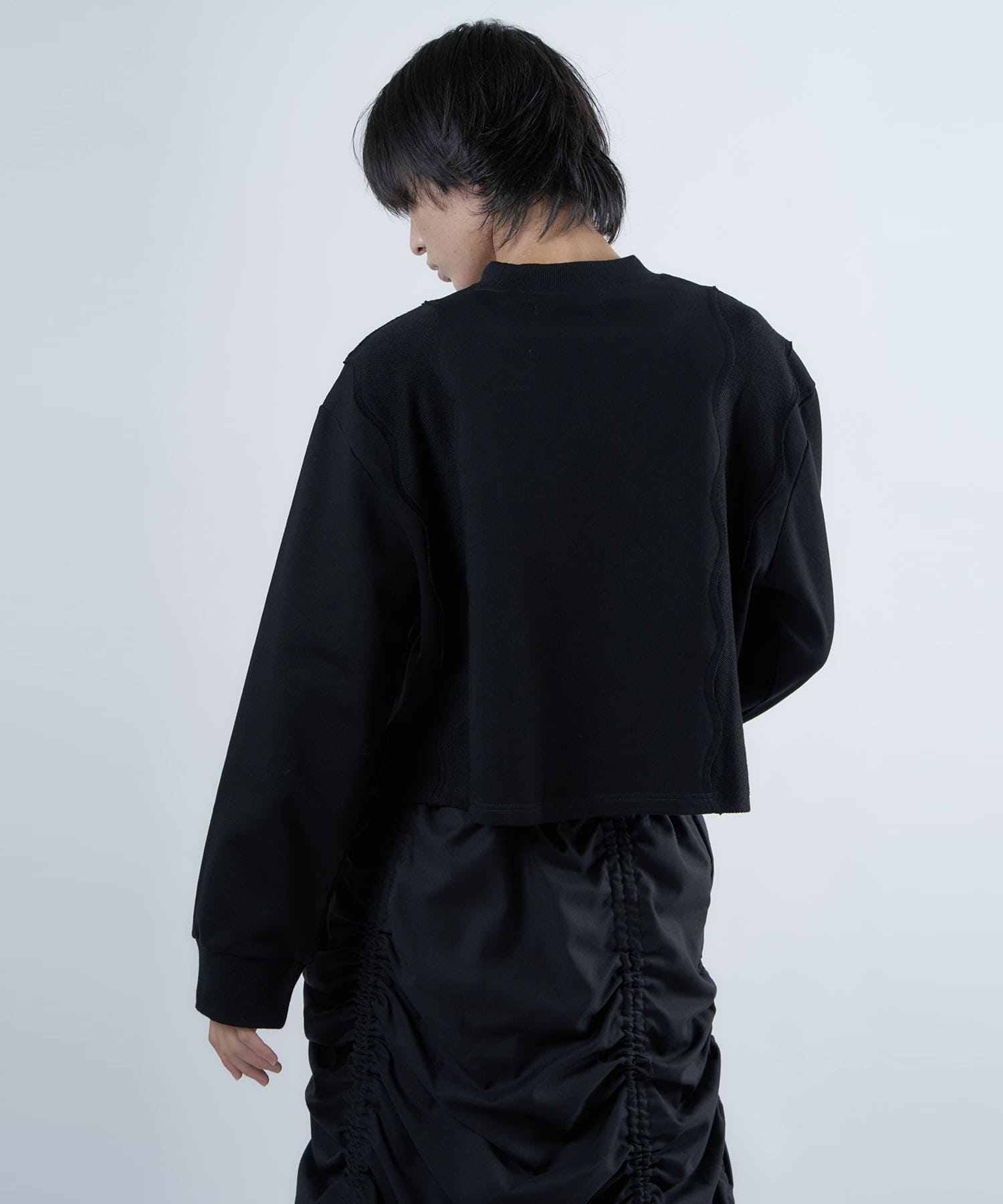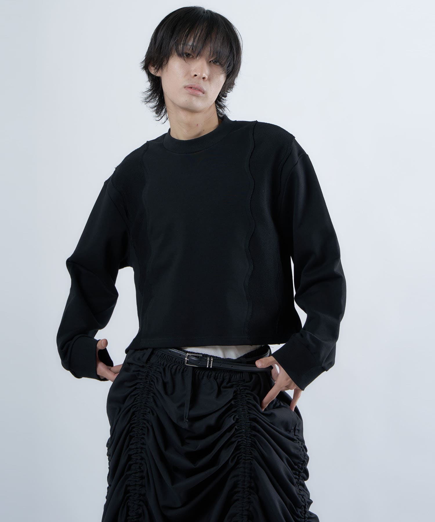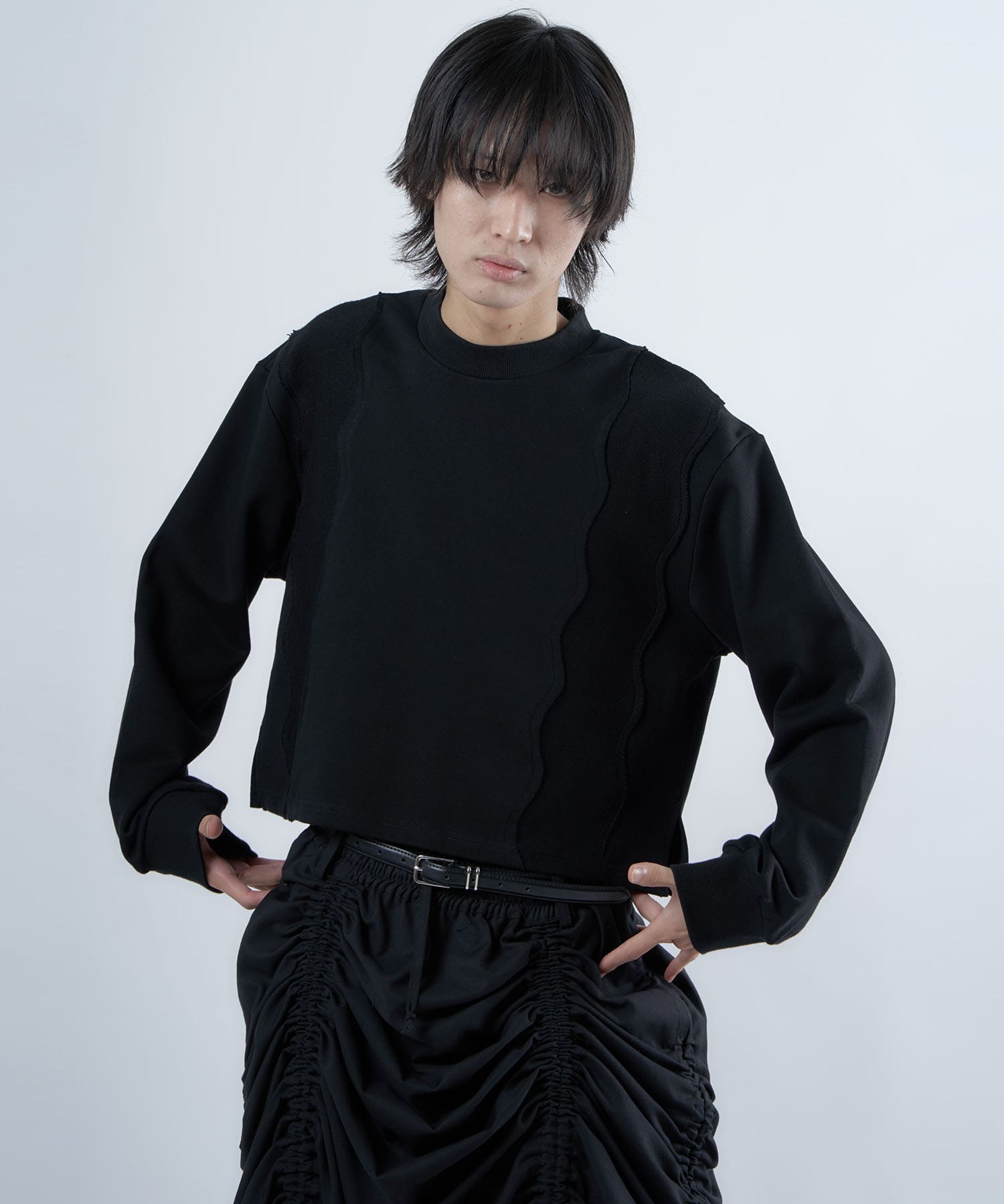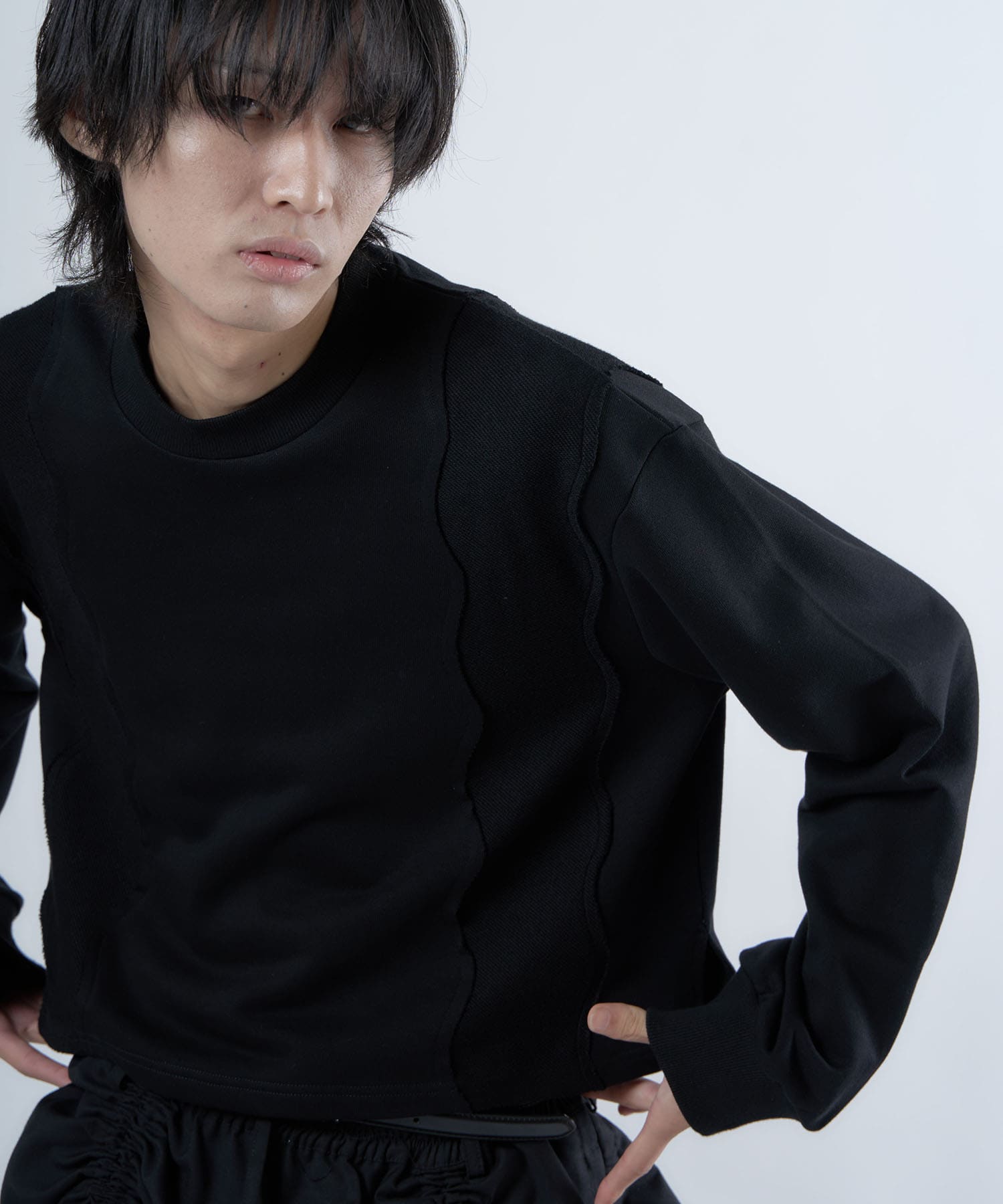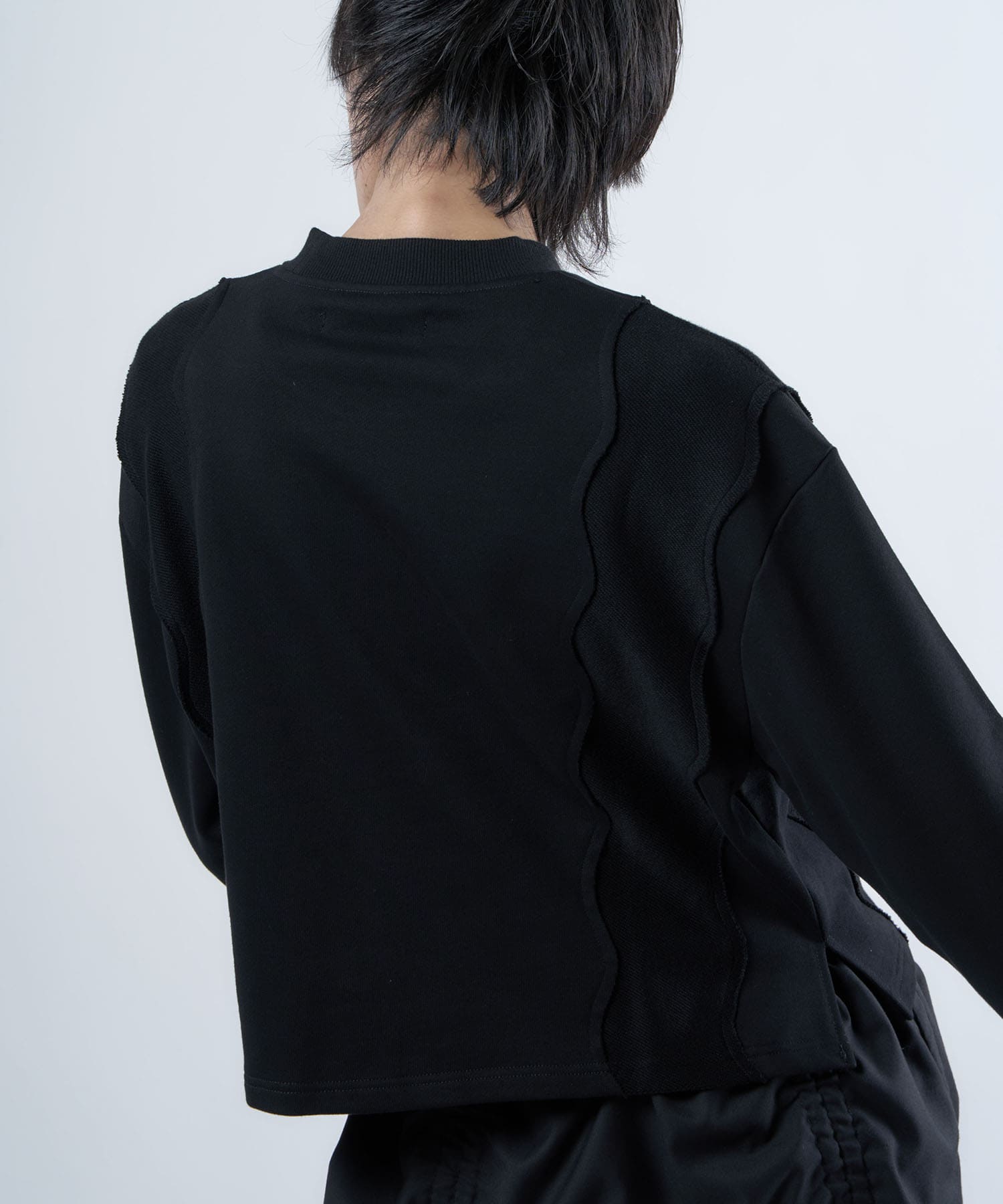 肌触りの良い100%コットン素材を使用したアイビーライン スウィッチングプルオーバー。アイテム名のアイビーラインはツル植物から着想を得ており、身頃を植物が伝っているイメージを切り替えのラインにて表現しています。NOTでは珍しいコンパクトなサイズ感で着心地の良いアイテムに仕上げています。