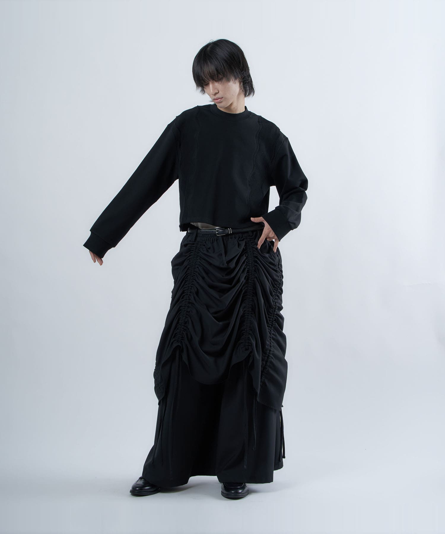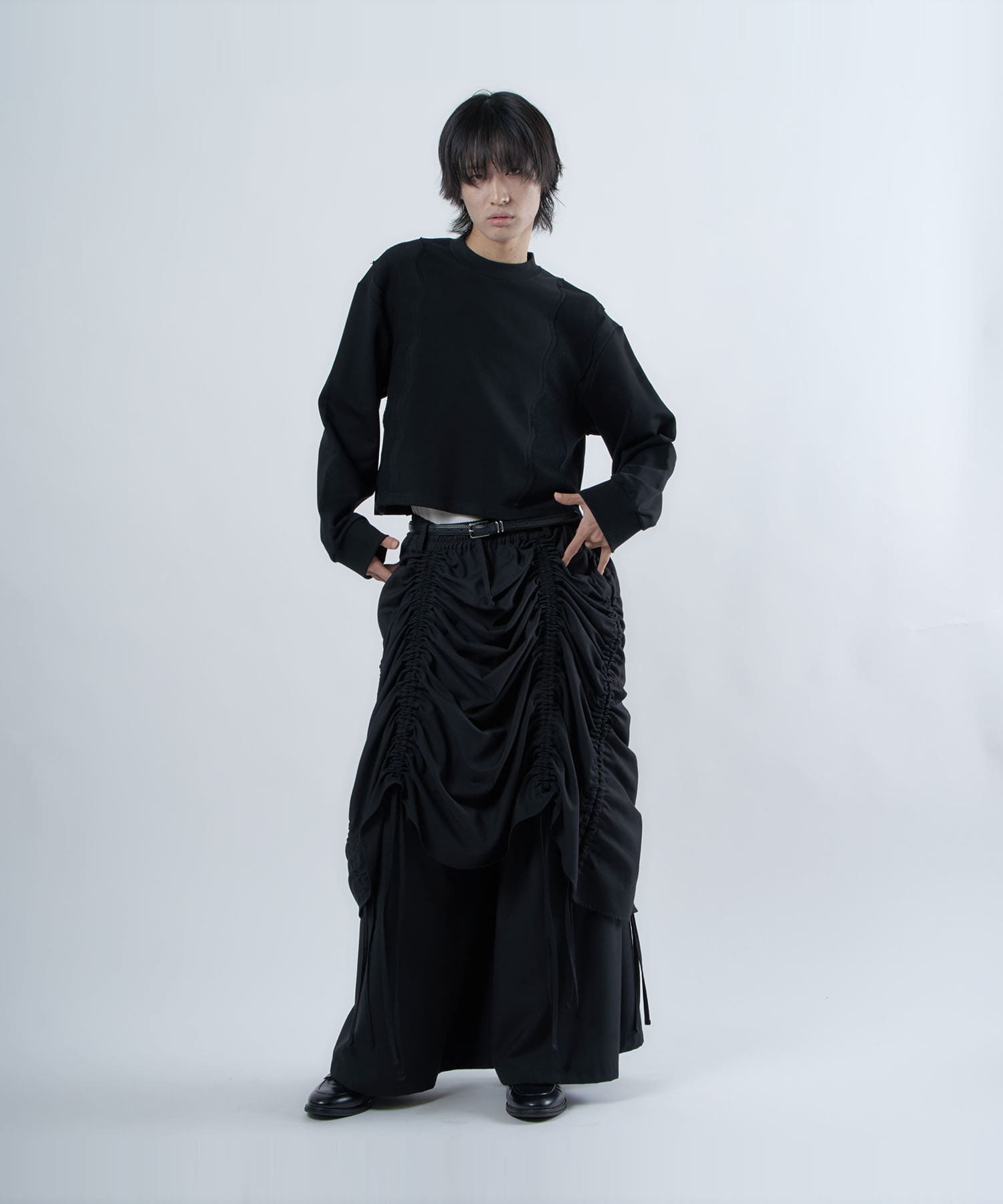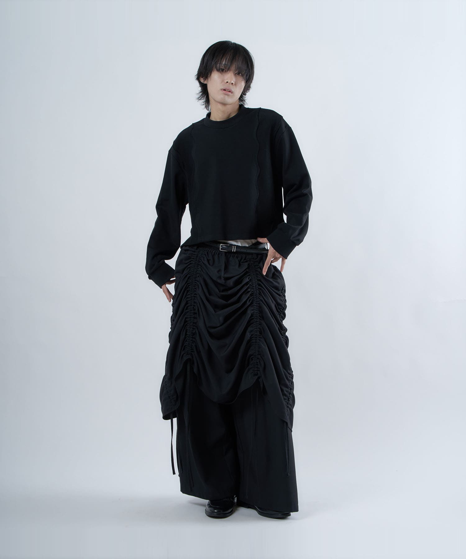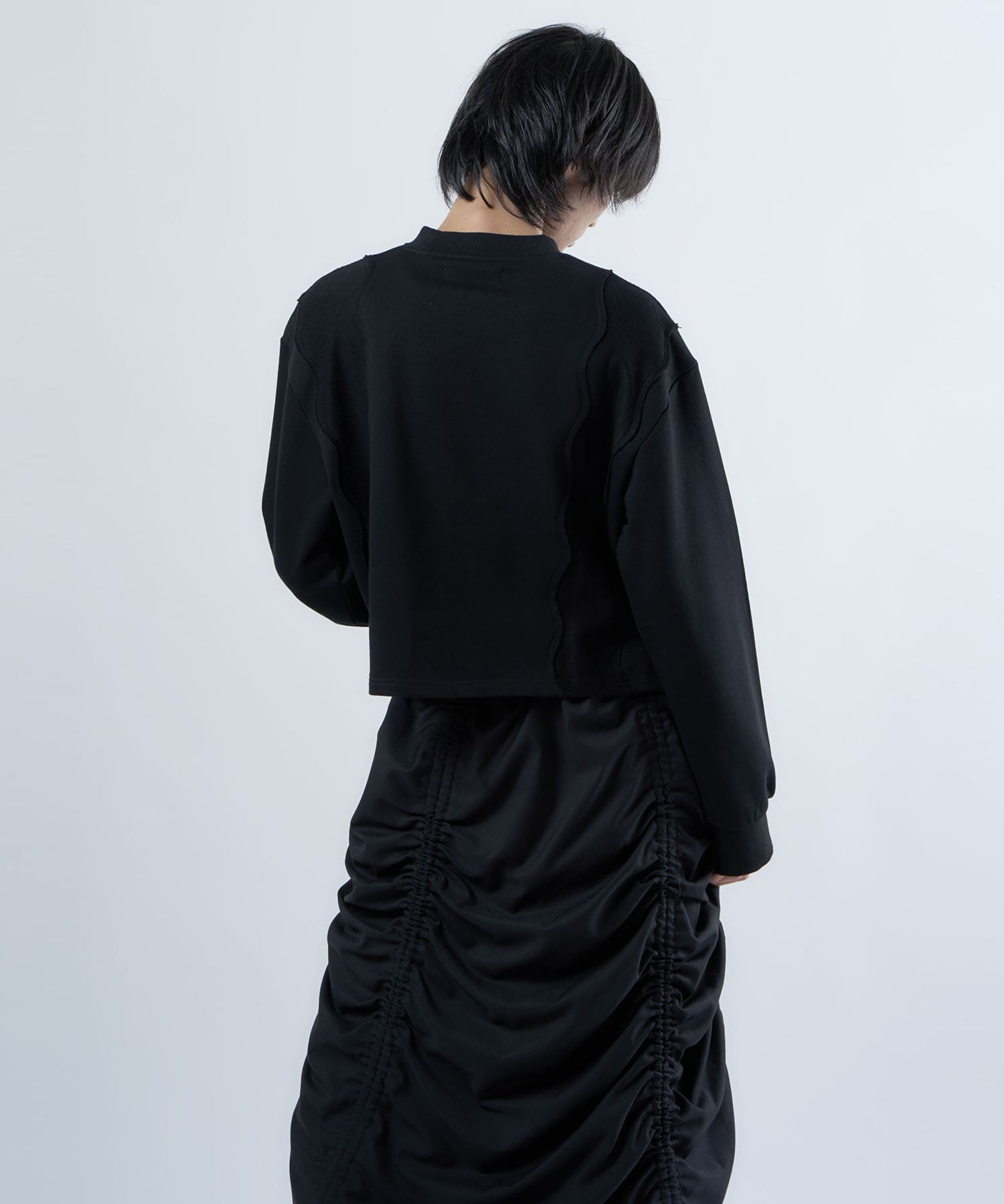 肌触りの良い100%コットン素材を使用したアイビーライン スウィッチングプルオーバー。アイテム名のアイビーラインはツル植物から着想を得ており、身頃を植物が伝っているイメージを切り替えのラインにて表現しています。NOTでは珍しいコンパクトなサイズ感で着心地の良いアイテムに仕上げています。