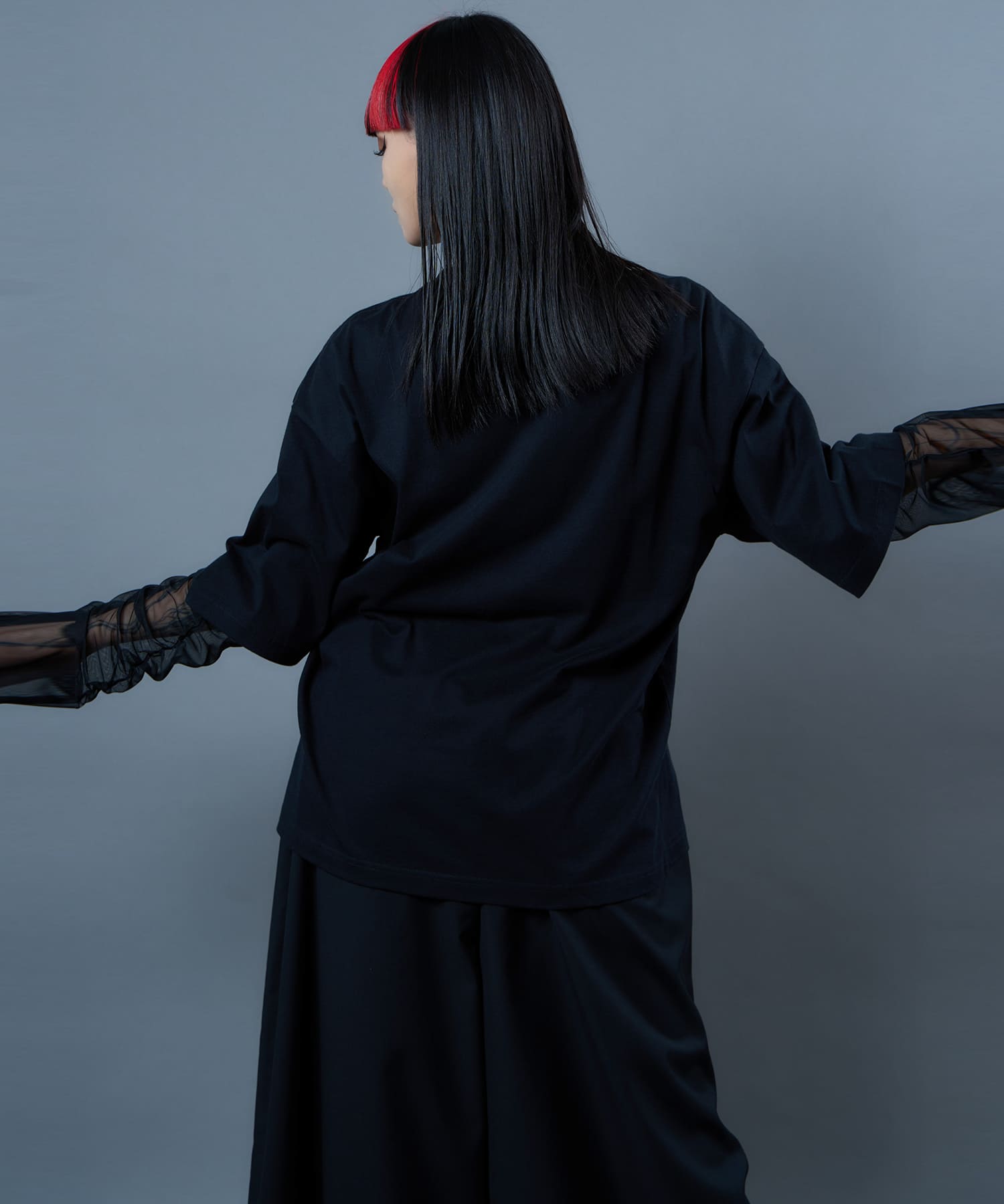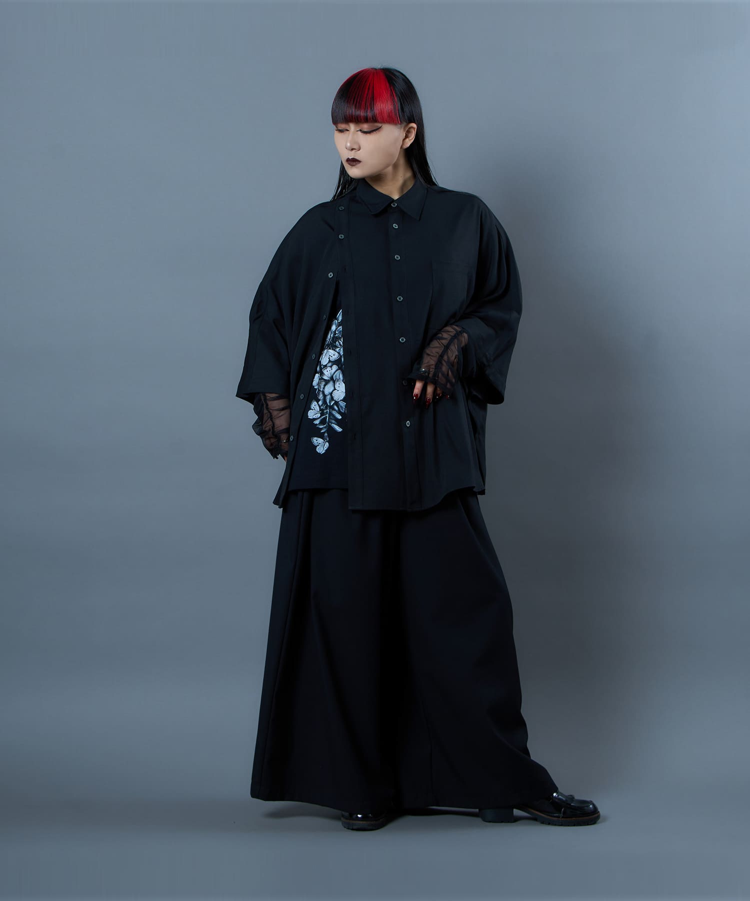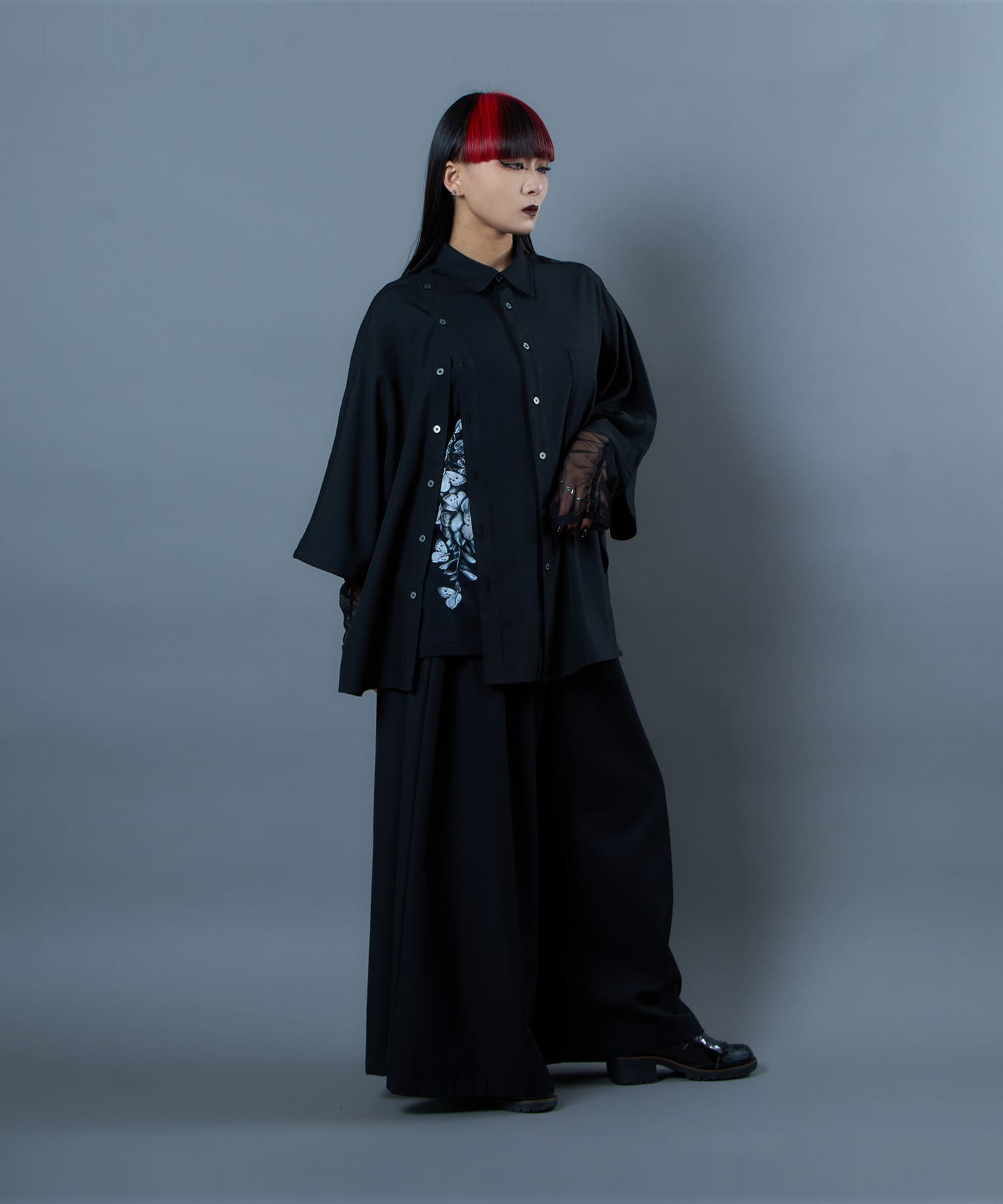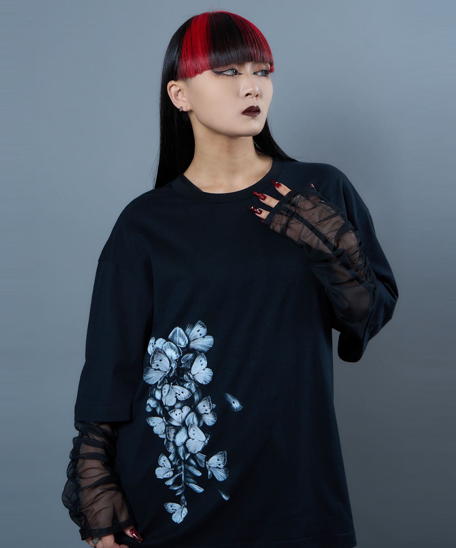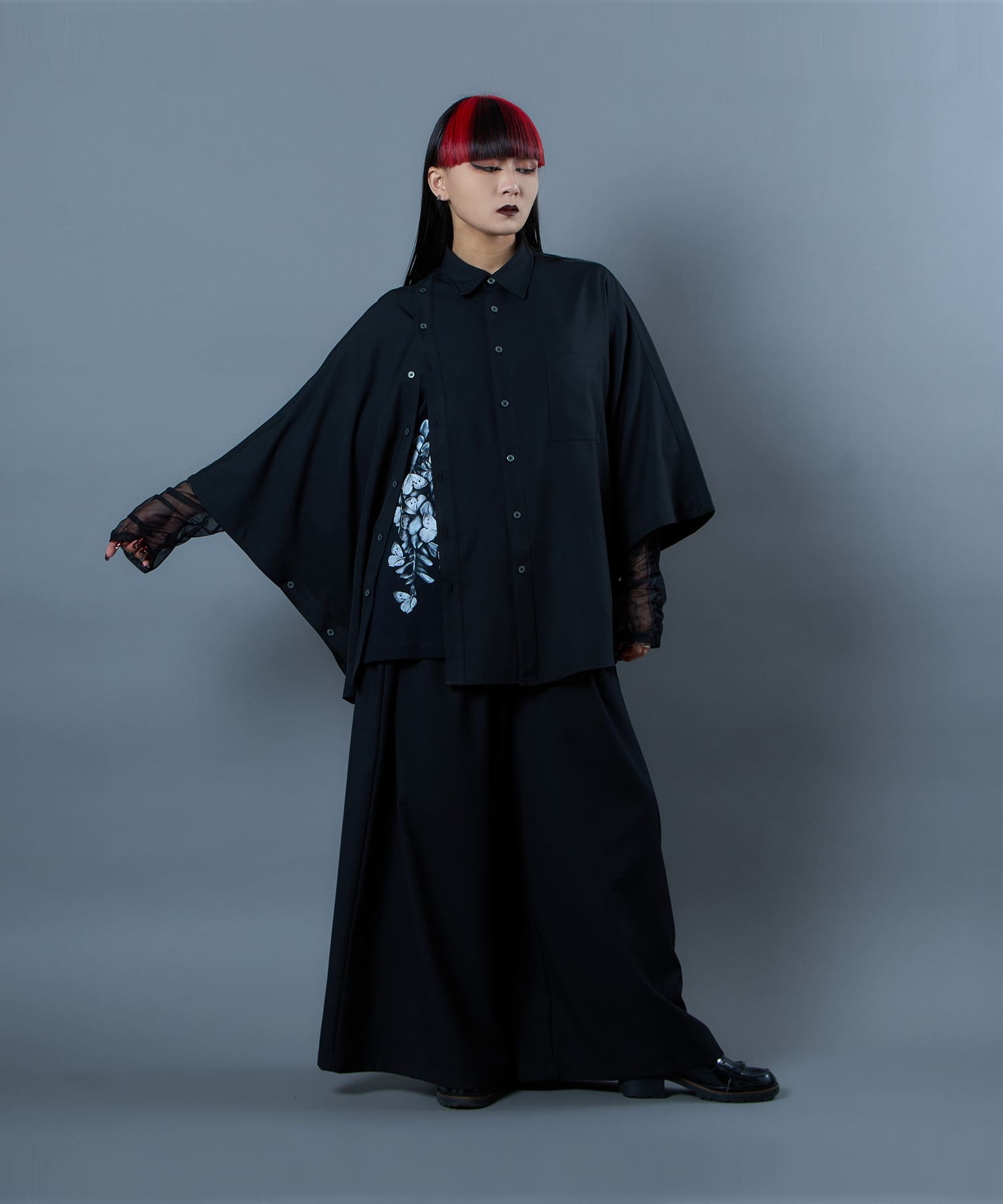 The Butterfly Wisteria Tee is generously sized and made of soft and comfortable material, and is an easy-care item made of 100% natural cotton. The graphic motif of wisteria and butterflies expresses ephemeral beauty, but at the same time, it has a sense of strangeness. The large print on the hem of this eye-catching piece can be worn alone or layered.