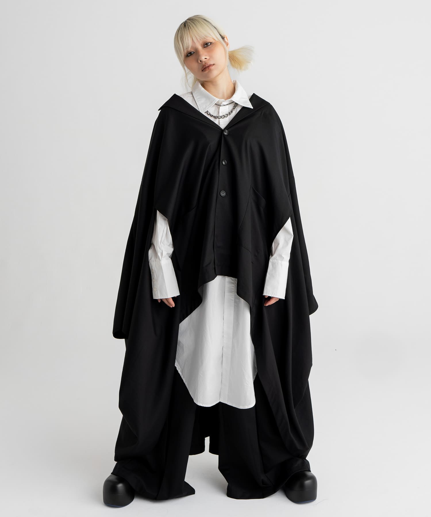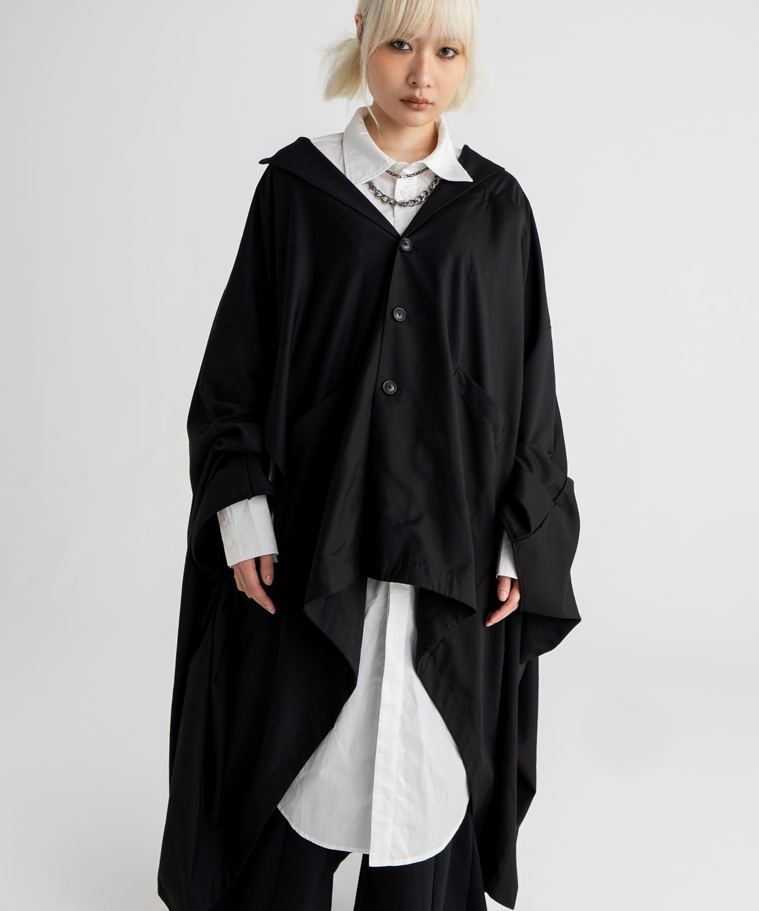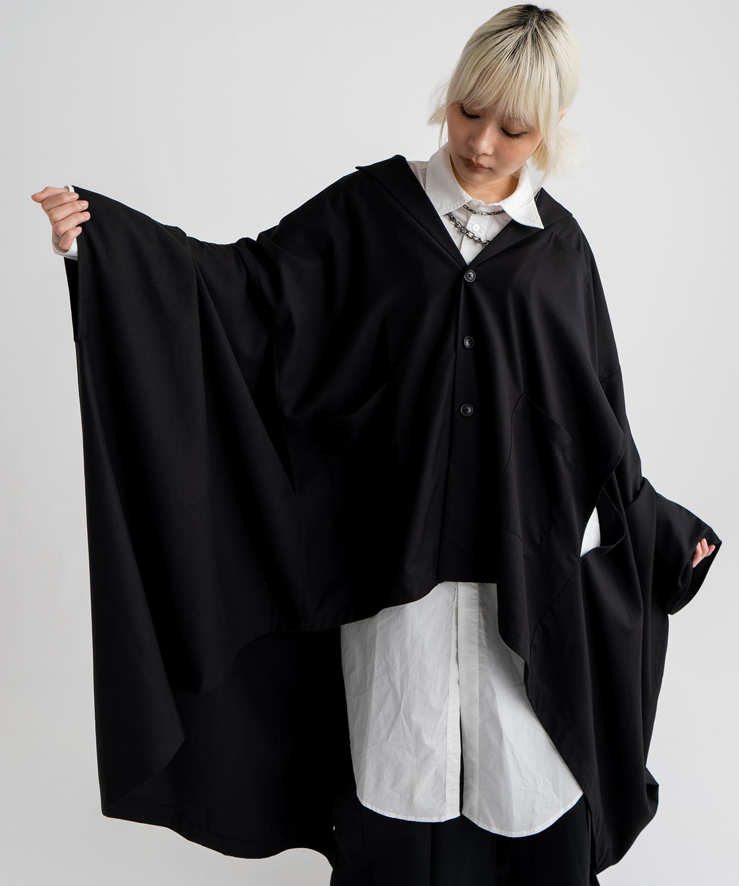 オリジナルのT/R生地(ポリエステル/レーヨン)を使用したビッグケープジャケット。