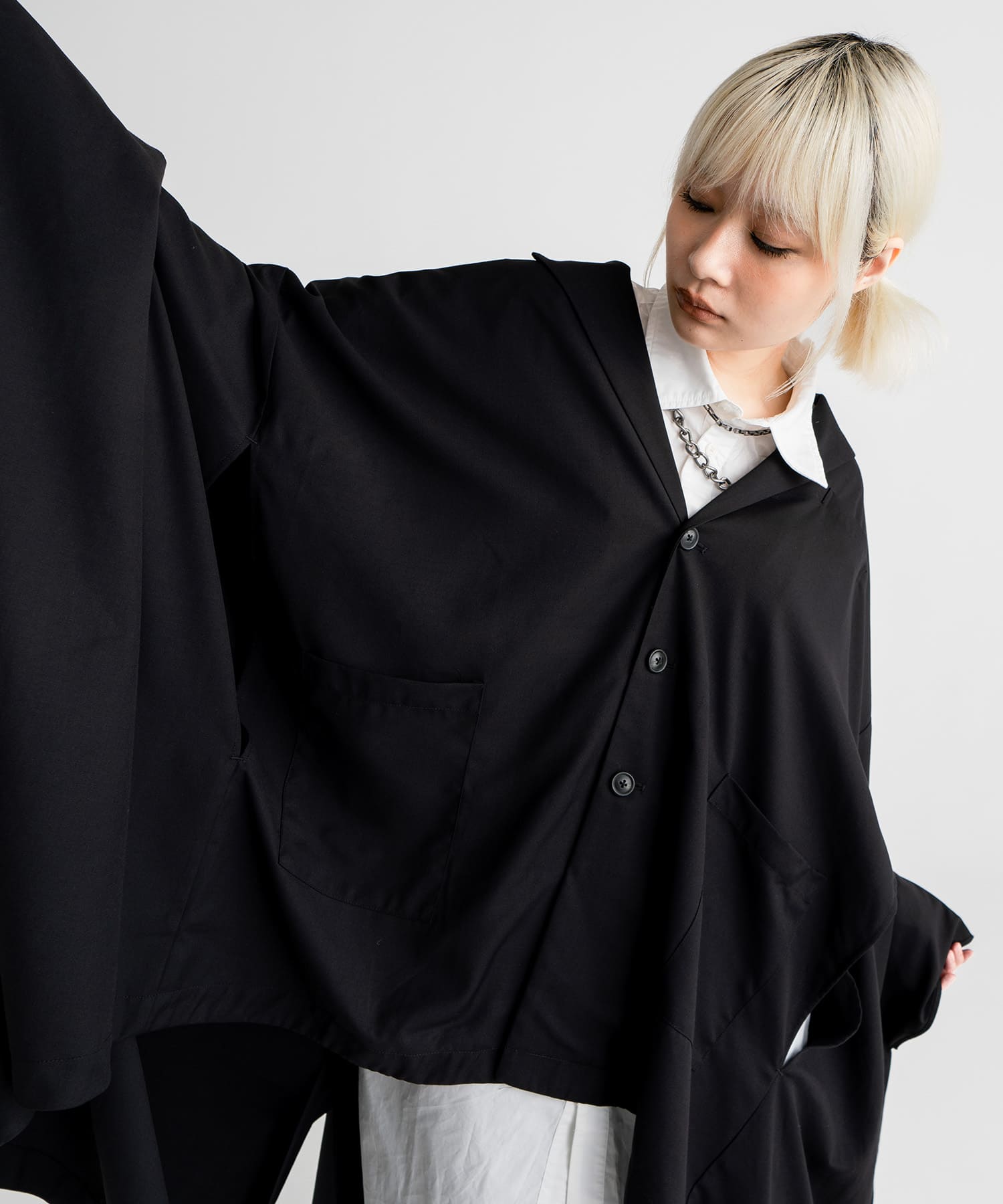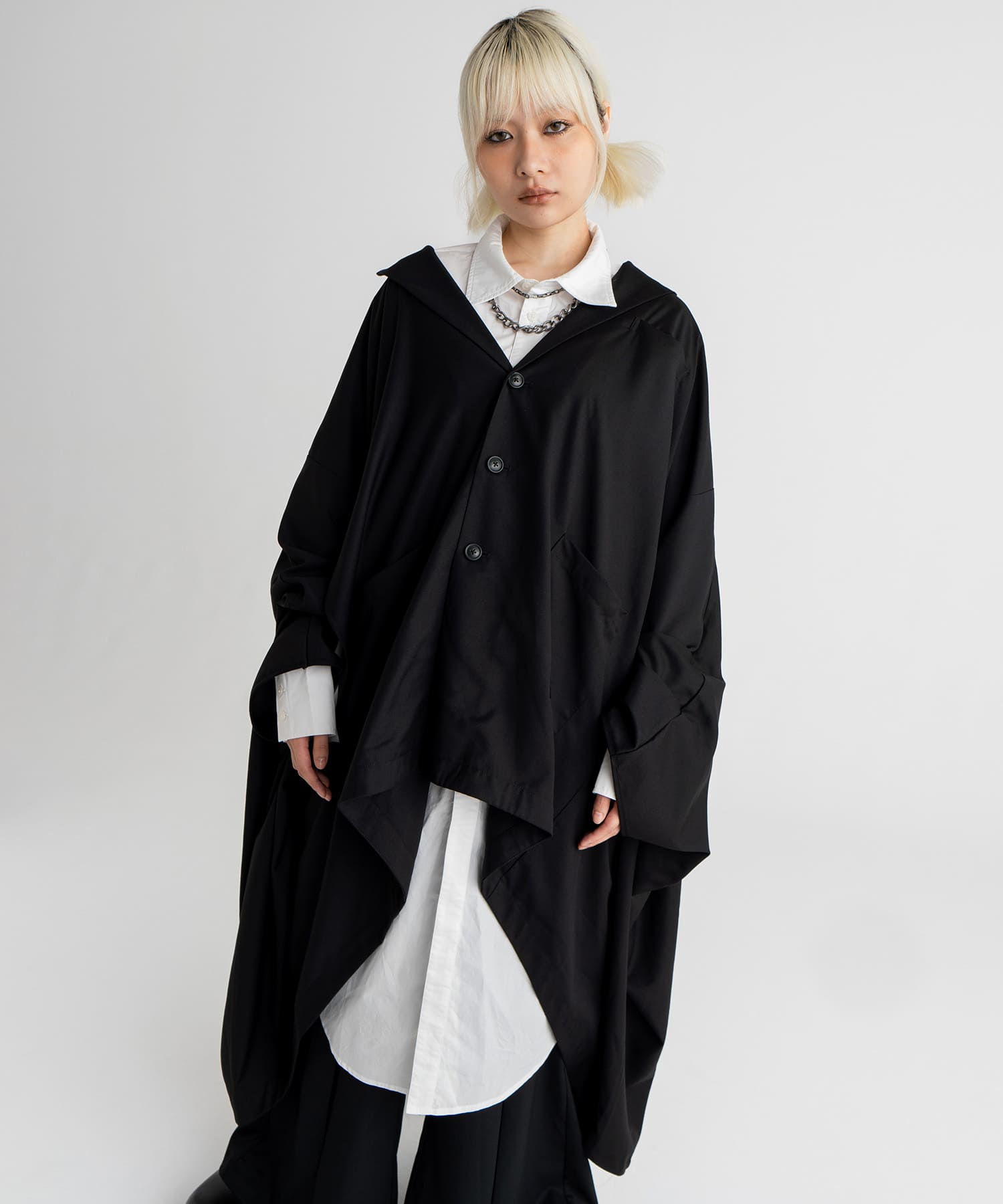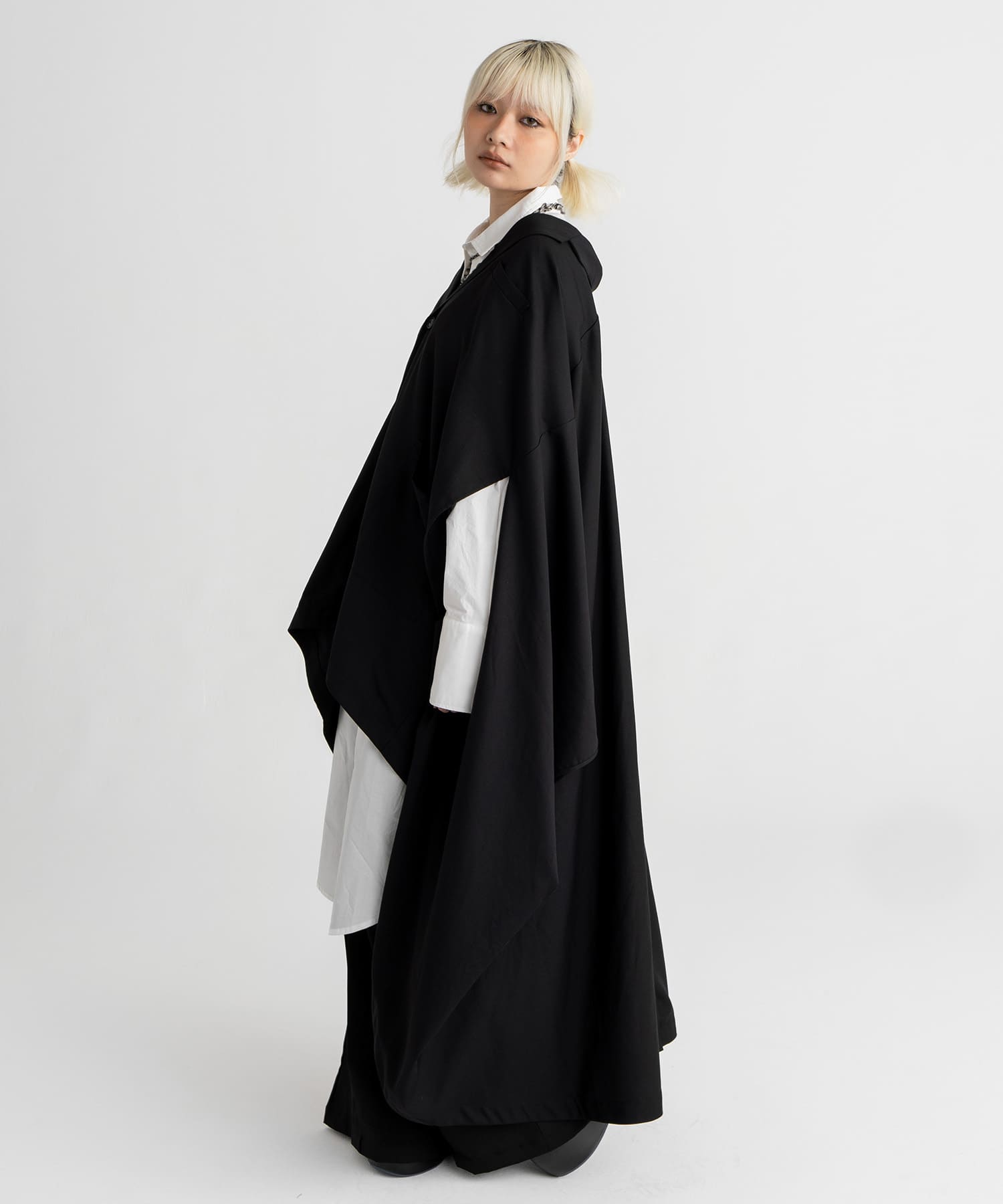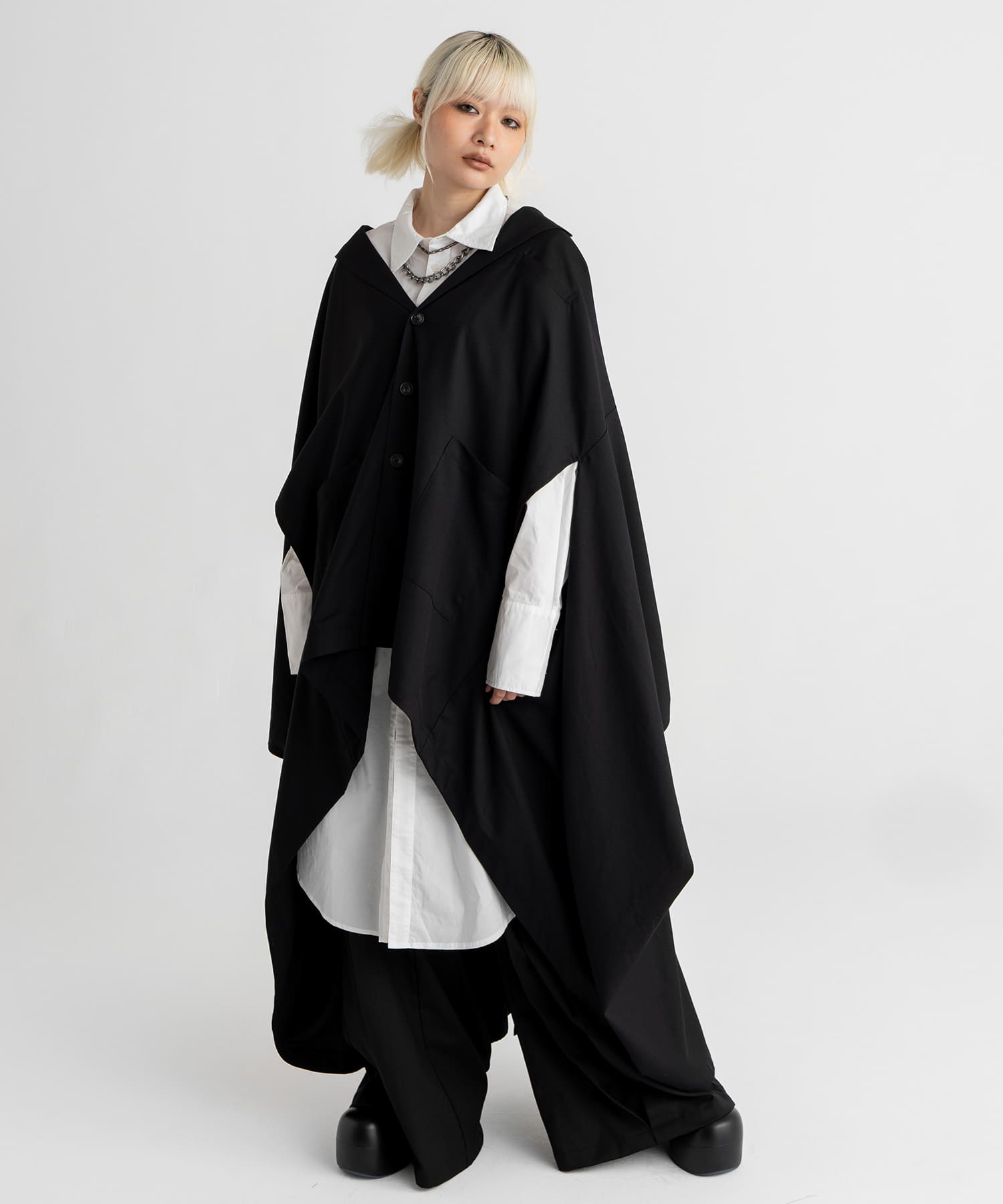 オリジナルのT/R生地(ポリエステル/レーヨン)を使用したビッグケープジャケット。