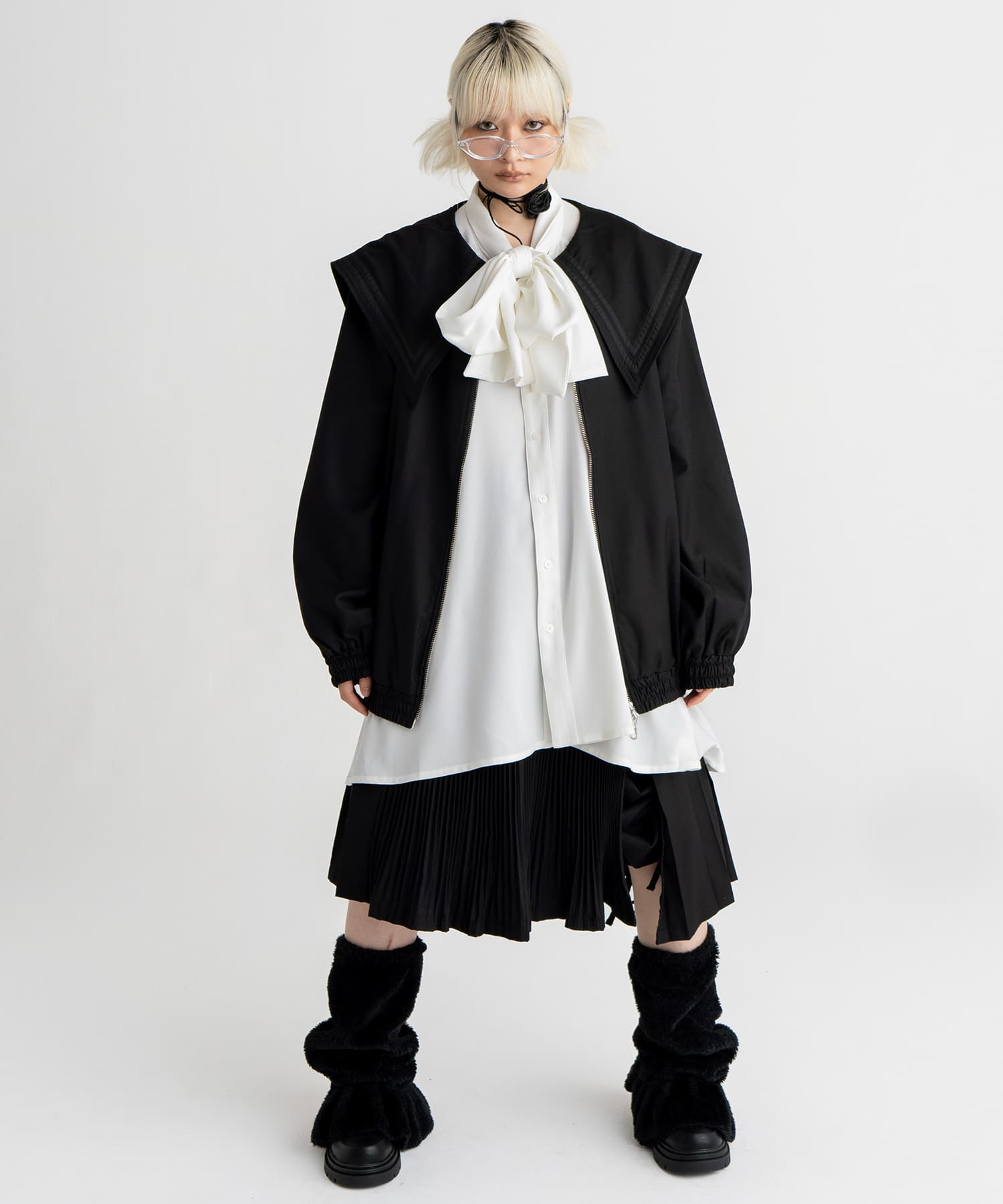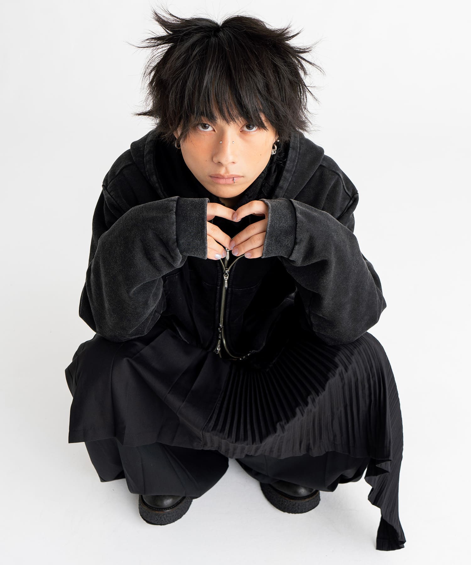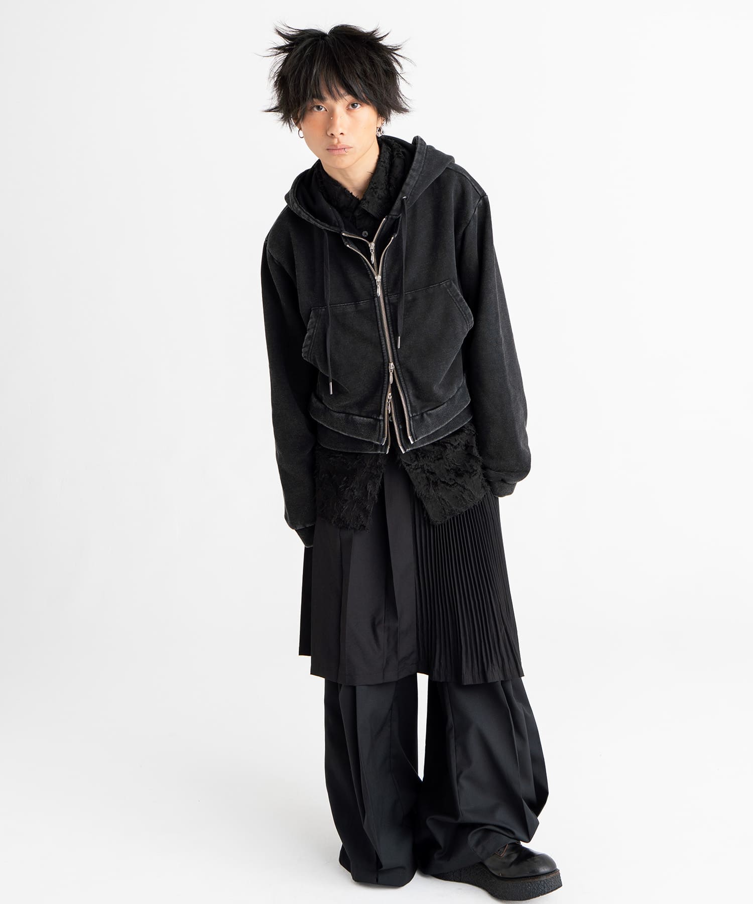 2種類のプリーツを使用し、見る角度で違った表情をみせるスカートに仕上げました。
