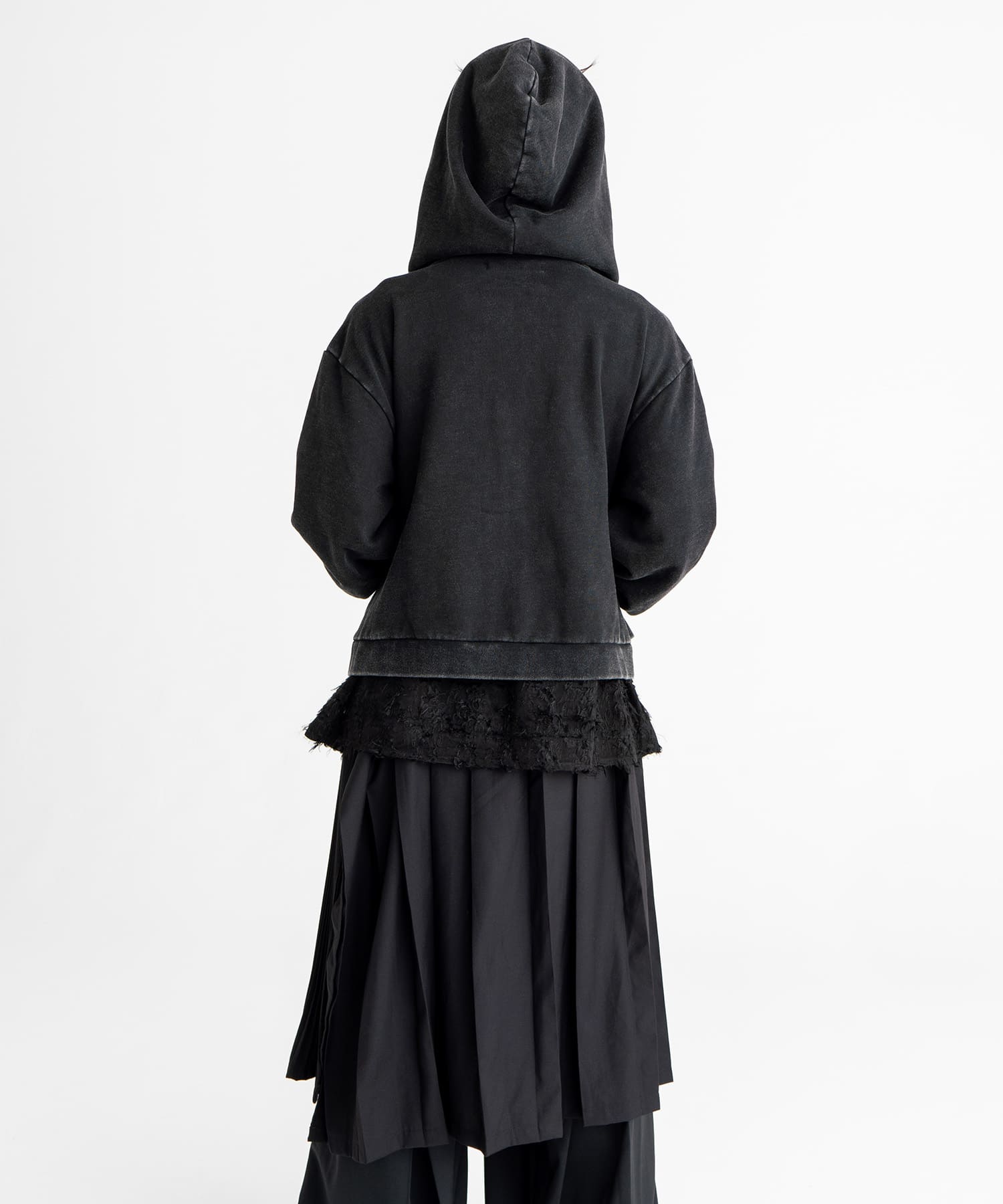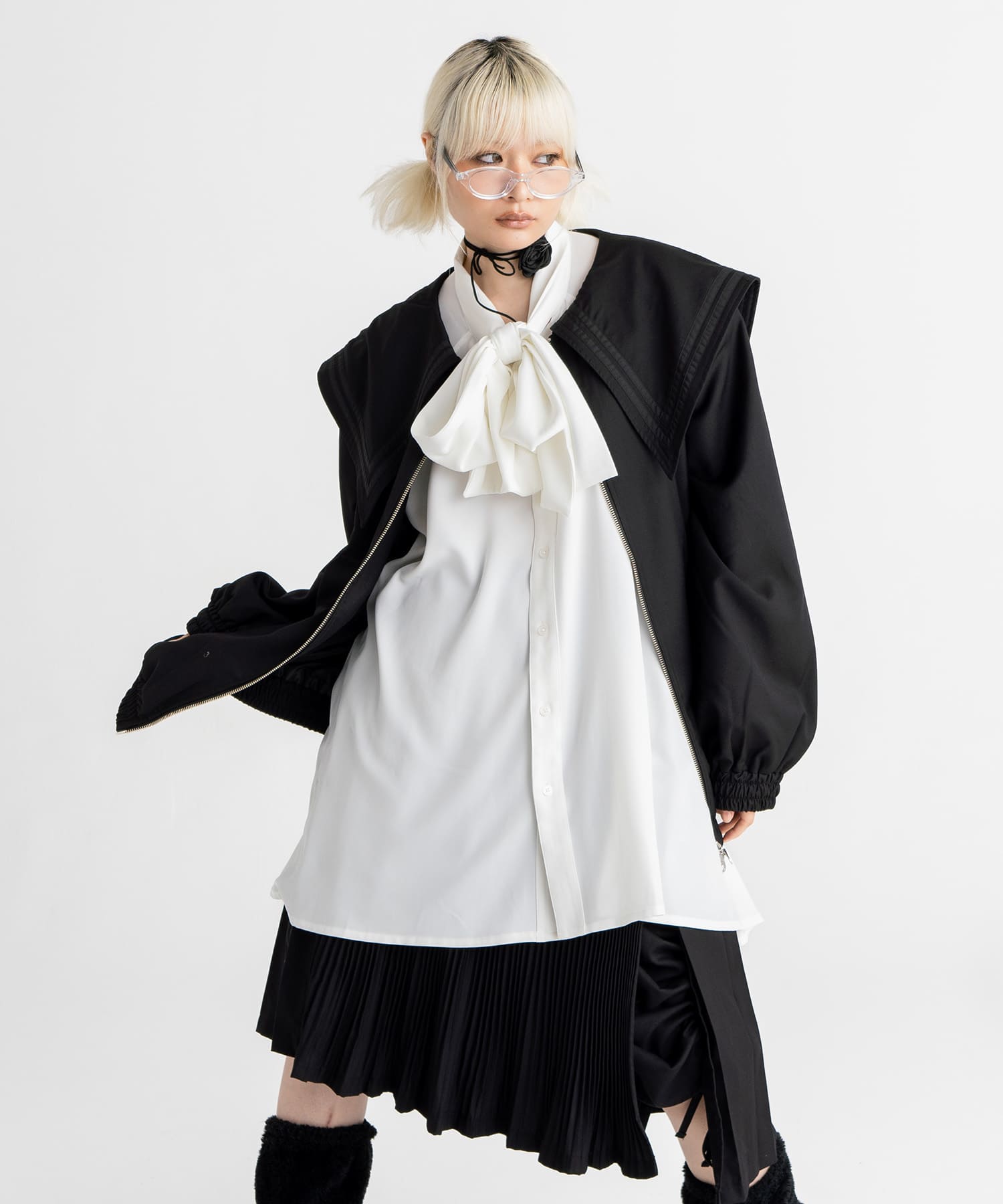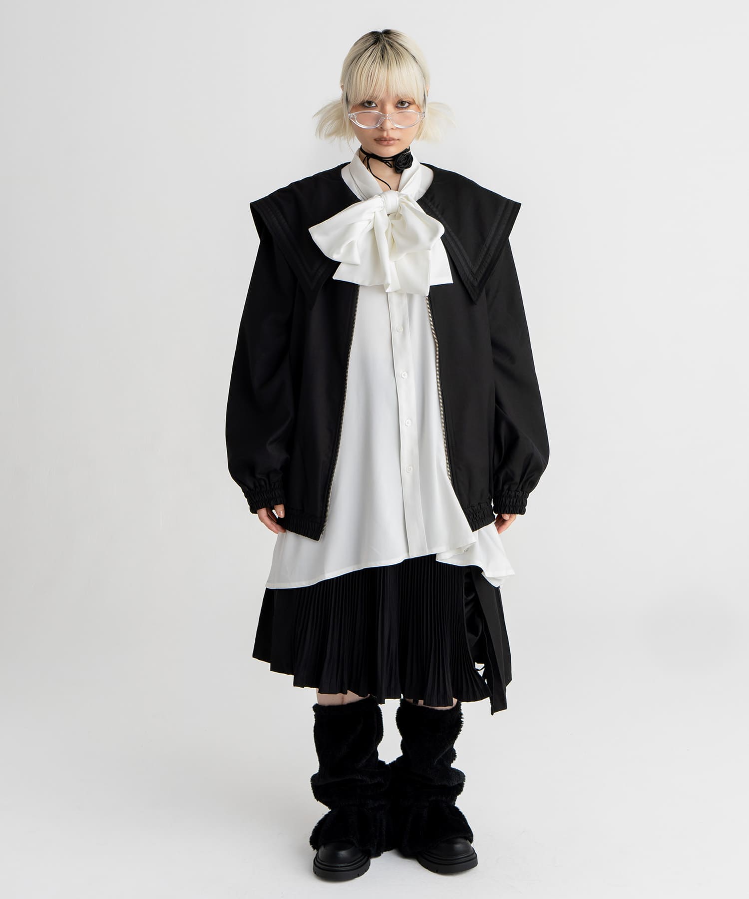 2種類のプリーツを使用し、見る角度で違った表情をみせるスカートに仕上げました。