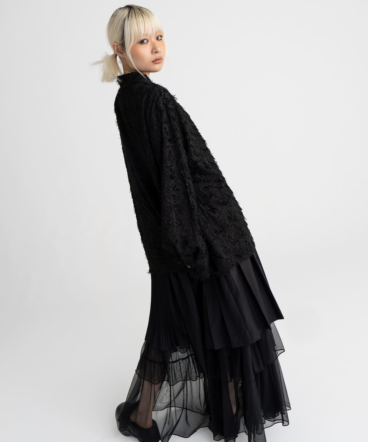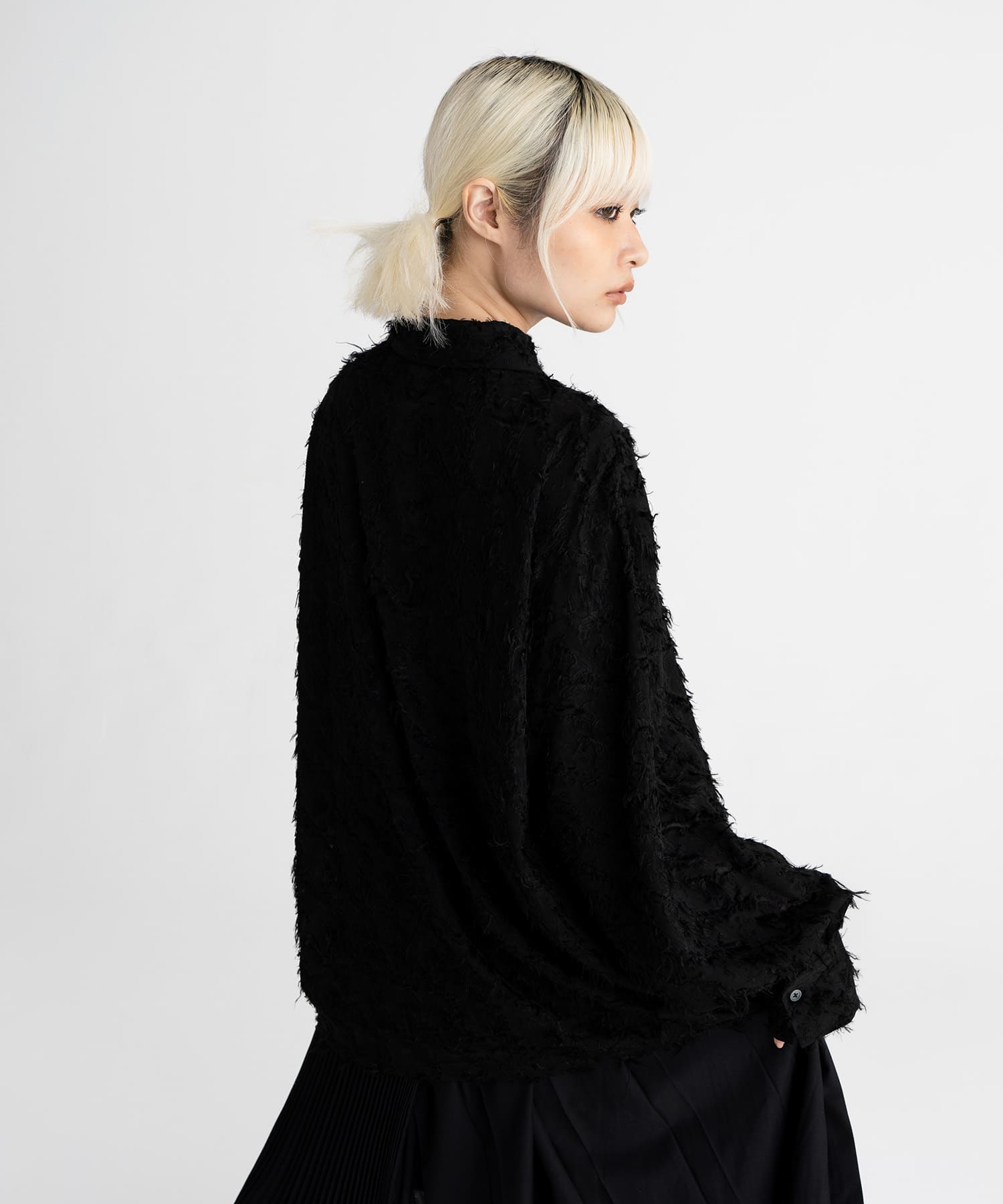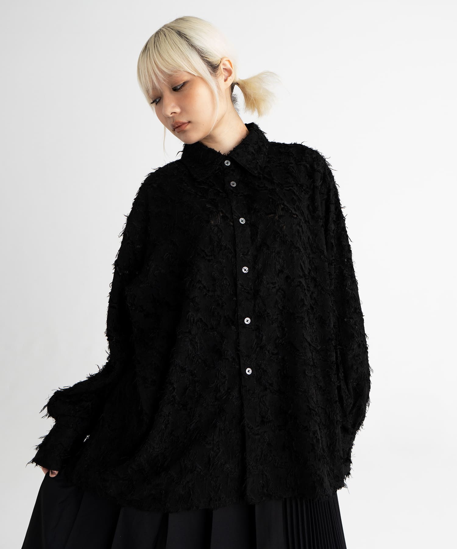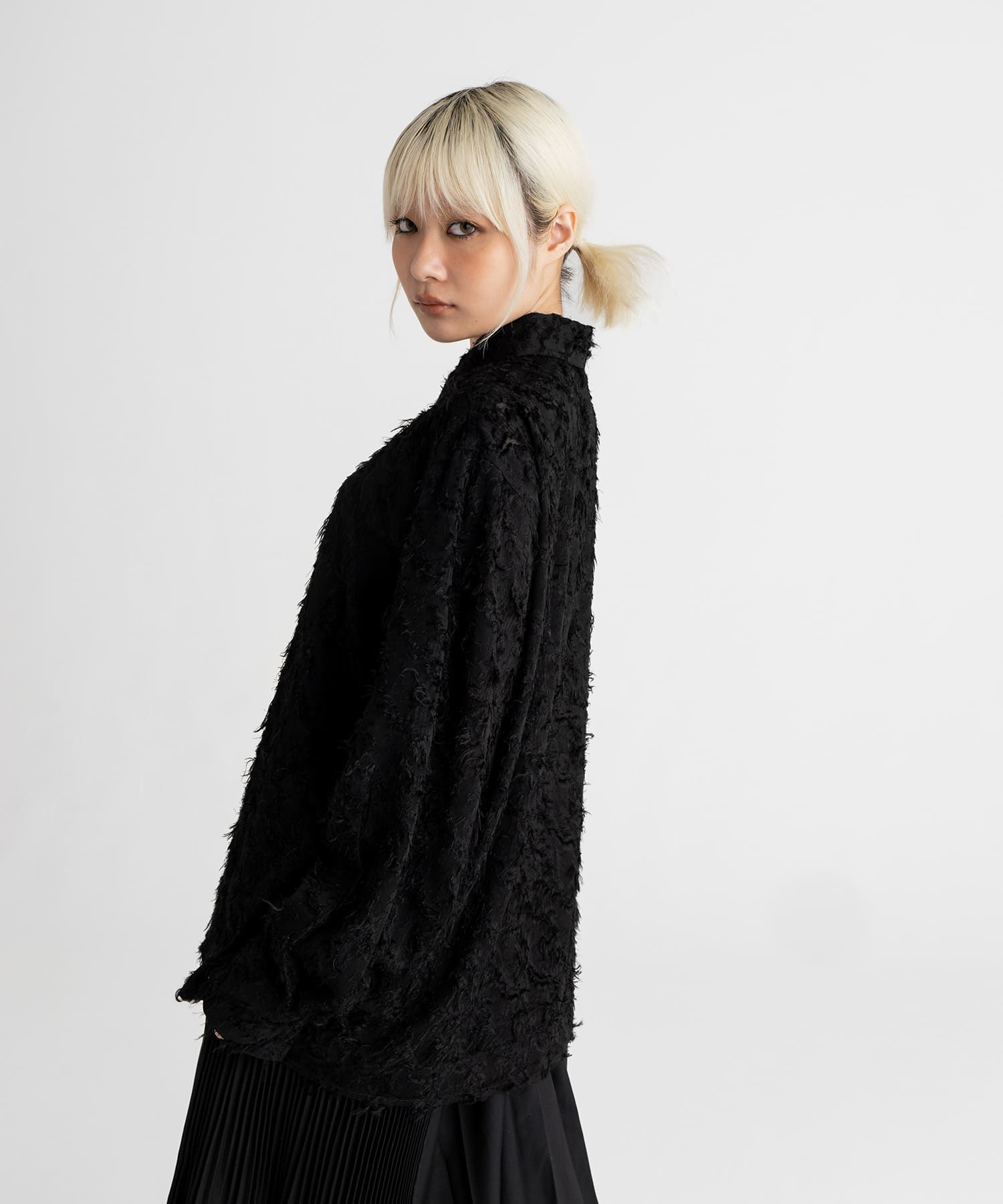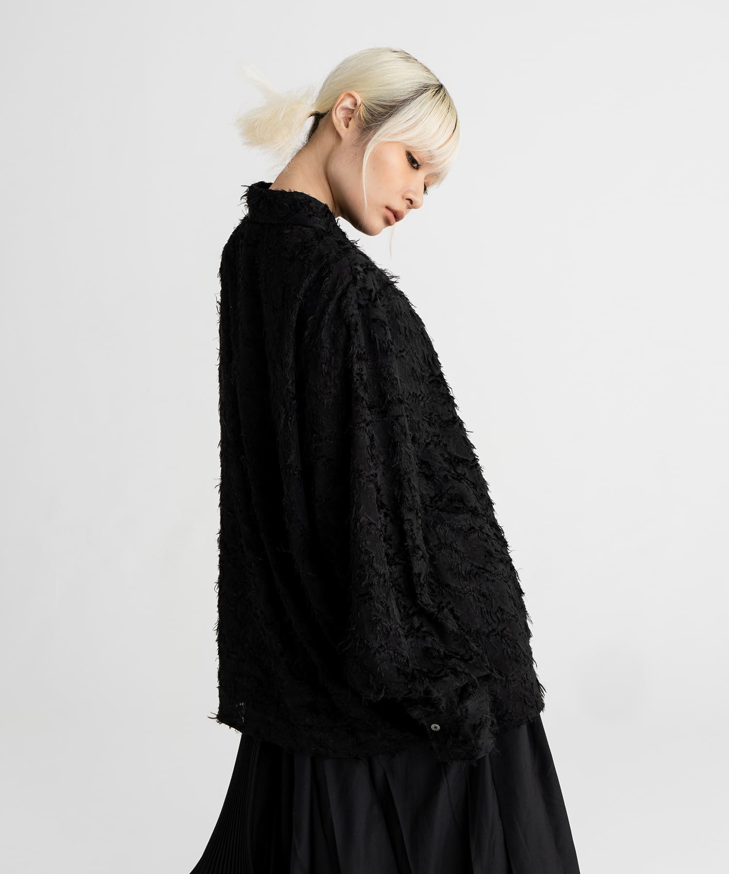 A jacquard sheer shirt crafted from feather-like jacquard fabric.