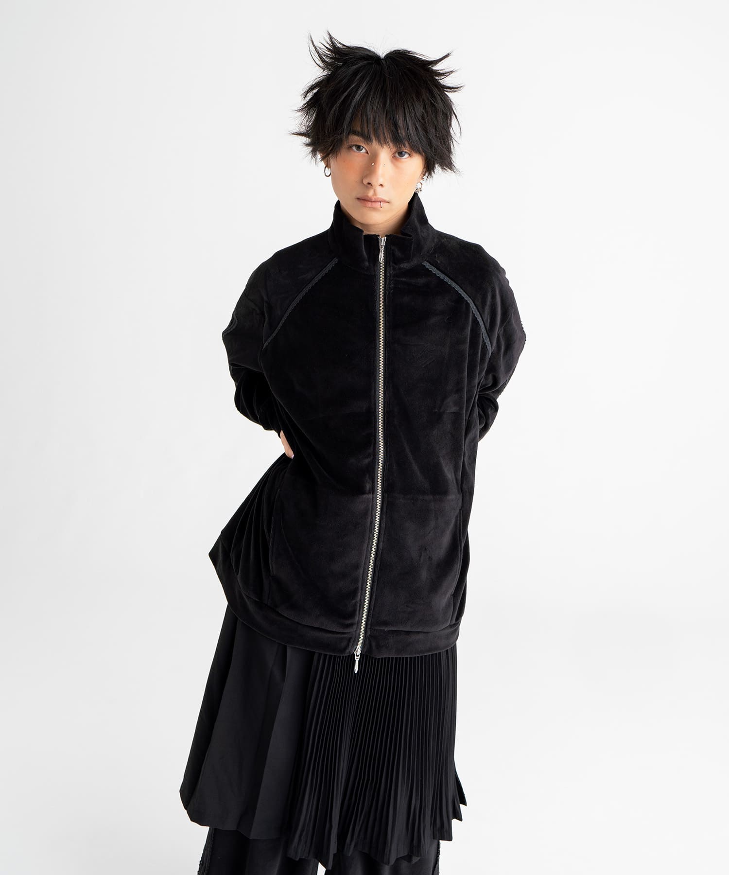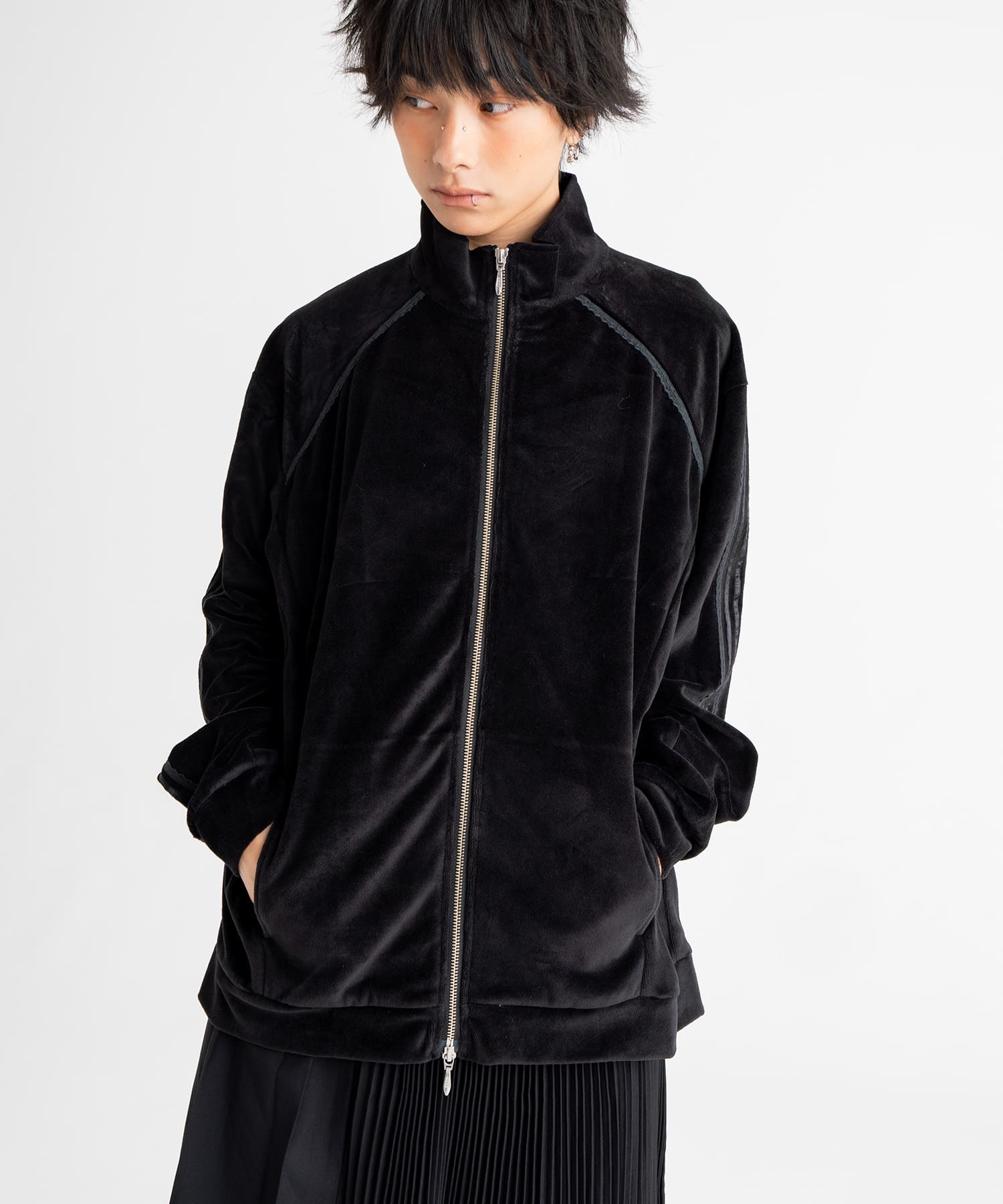 上品な光沢のあるベロアを使用した、ベロアトラックジャケット。